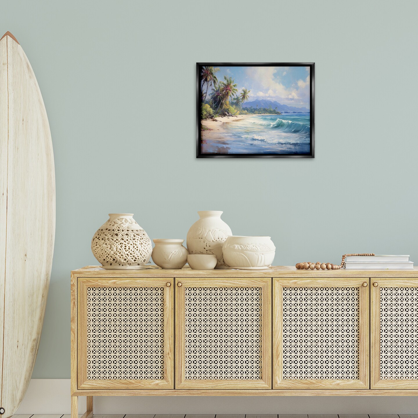 Stupell Industries Tropical Coast with Rolling Waves Floating Frame Design by Franklyn Gregory