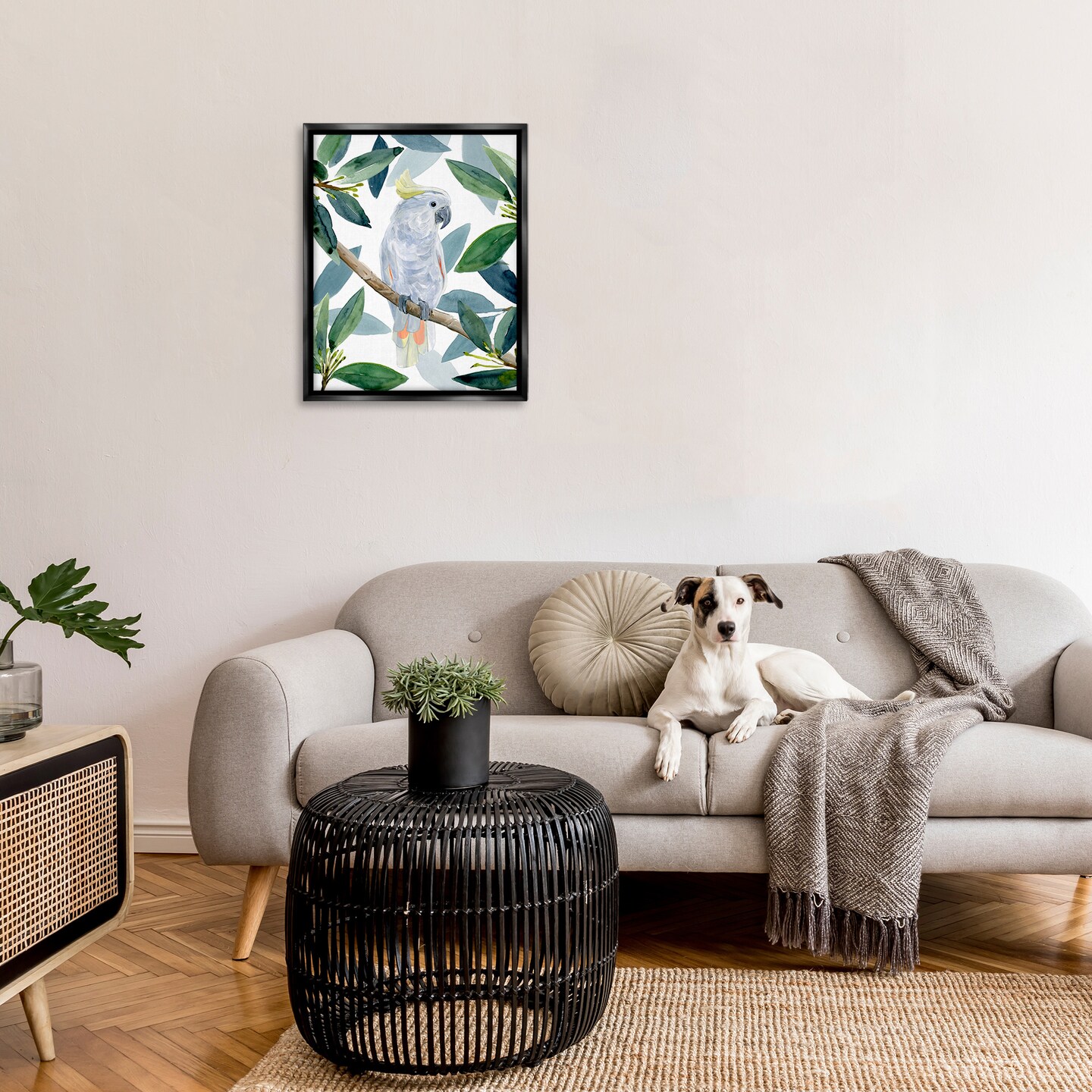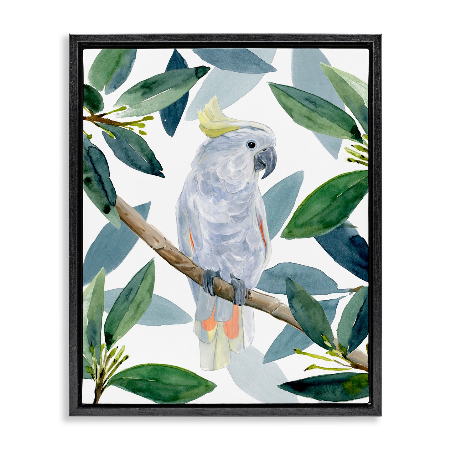 Stupell Industries Tropical Cockatoo & Greenery Framed Floater Canvas Wall Art
