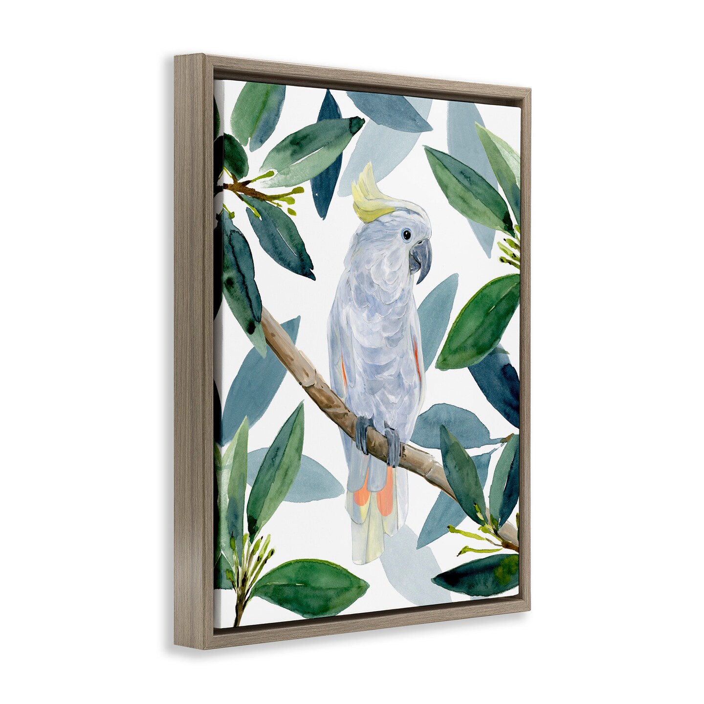 Stupell Industries Tropical Cockatoo & Greenery Framed Floater Canvas Wall Art