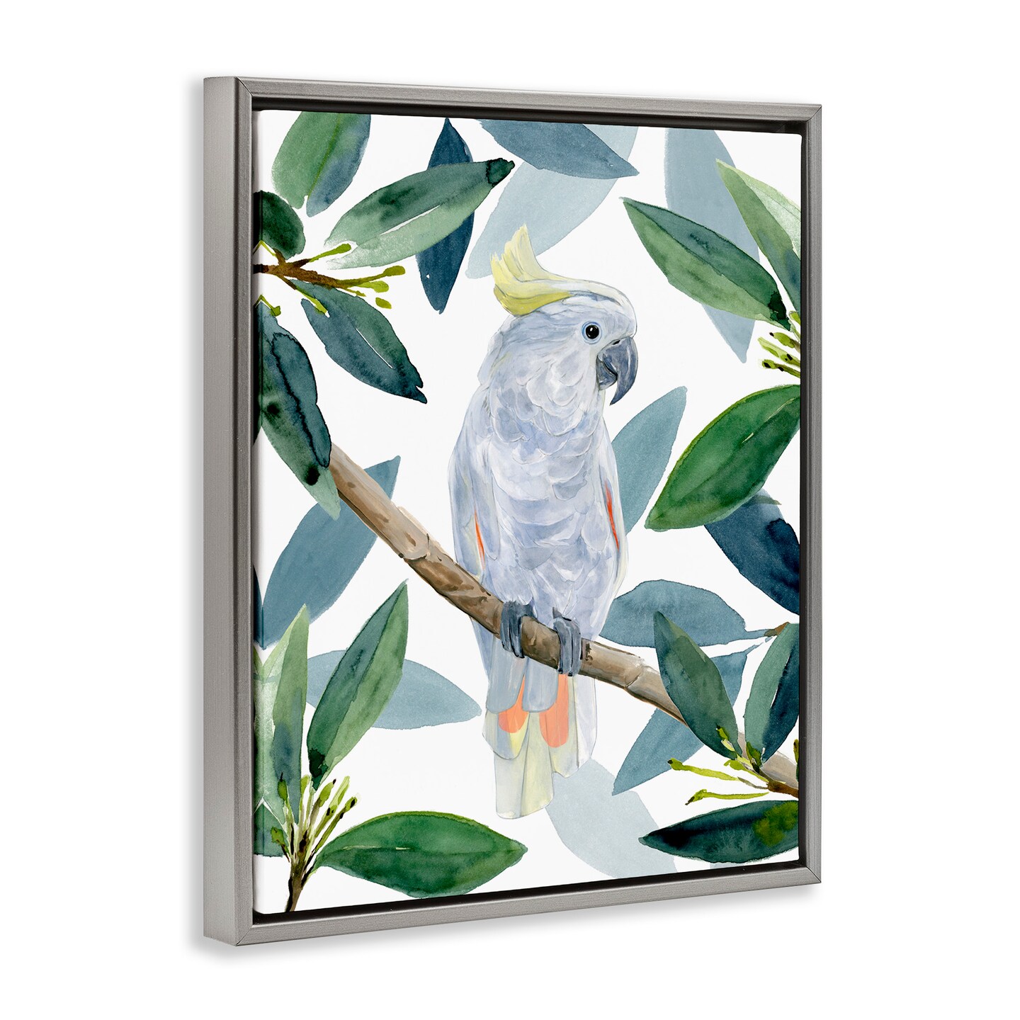 Stupell Industries Tropical Cockatoo & Greenery Framed Floater Canvas Wall Art