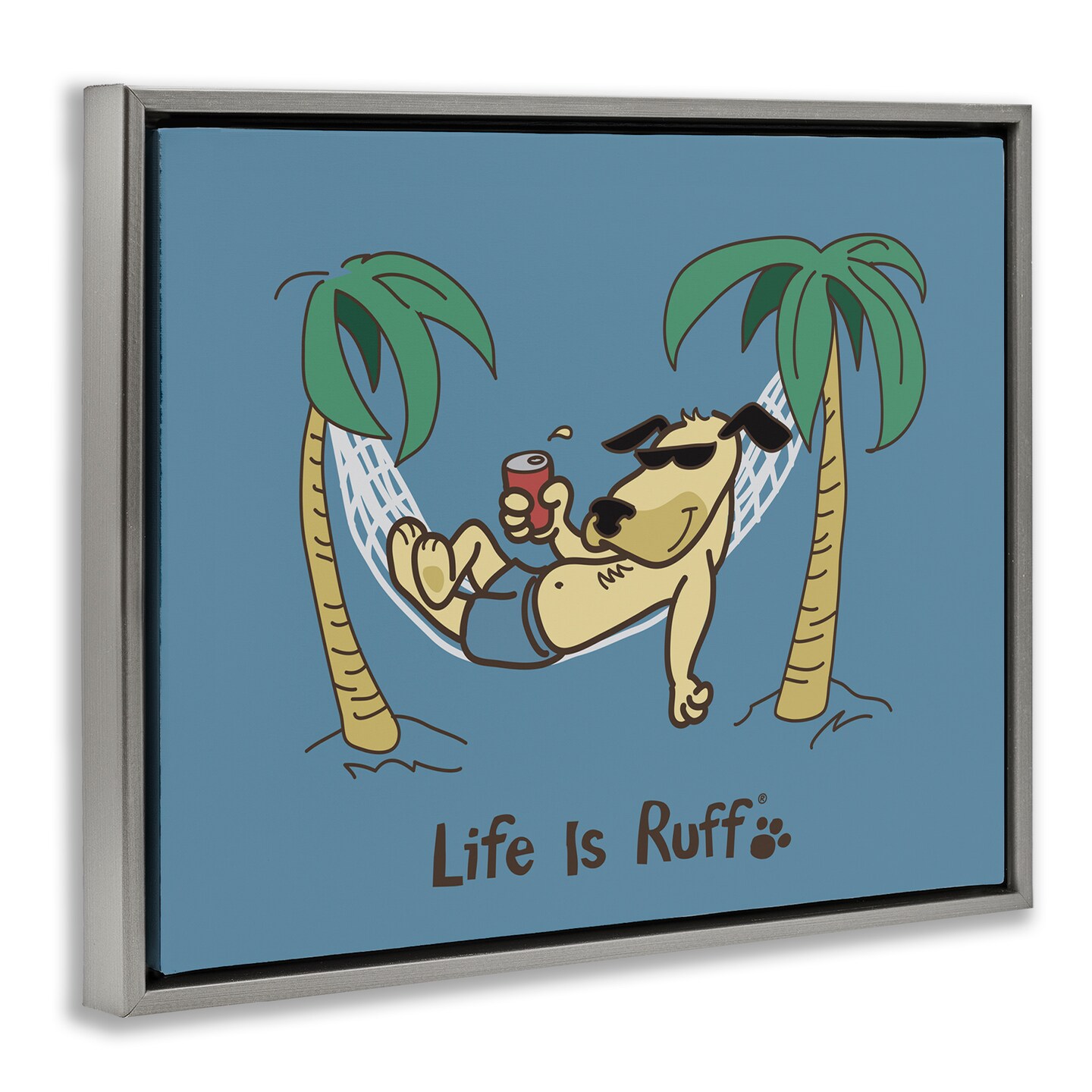 Stupell Industries Tropical Dog on Hammock Framed Floater Canvas Wall Art Design by LIR