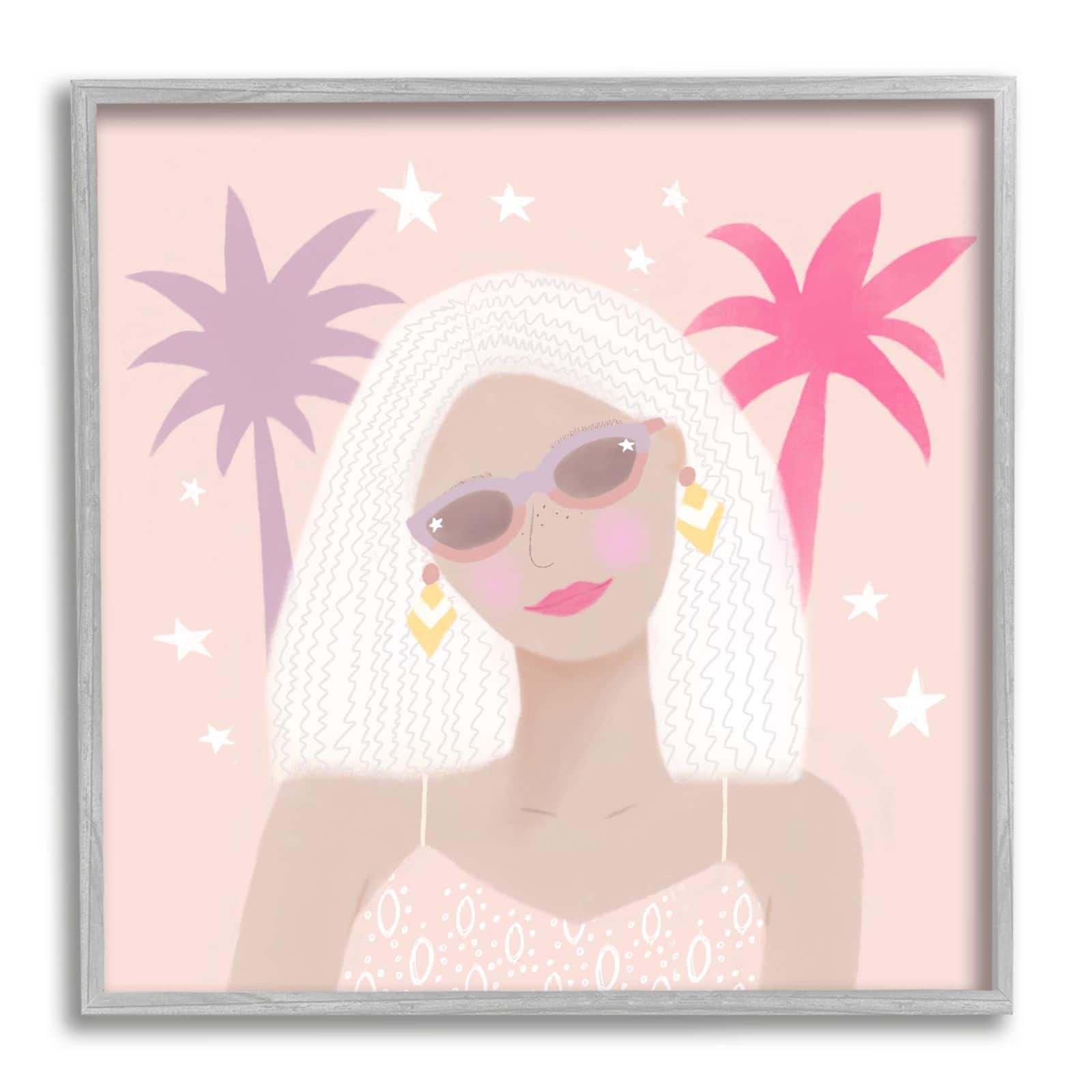 Stupell Industries Tropical Girl Fashionista Pink Palm Trees Starry Sky Framed Wall Art