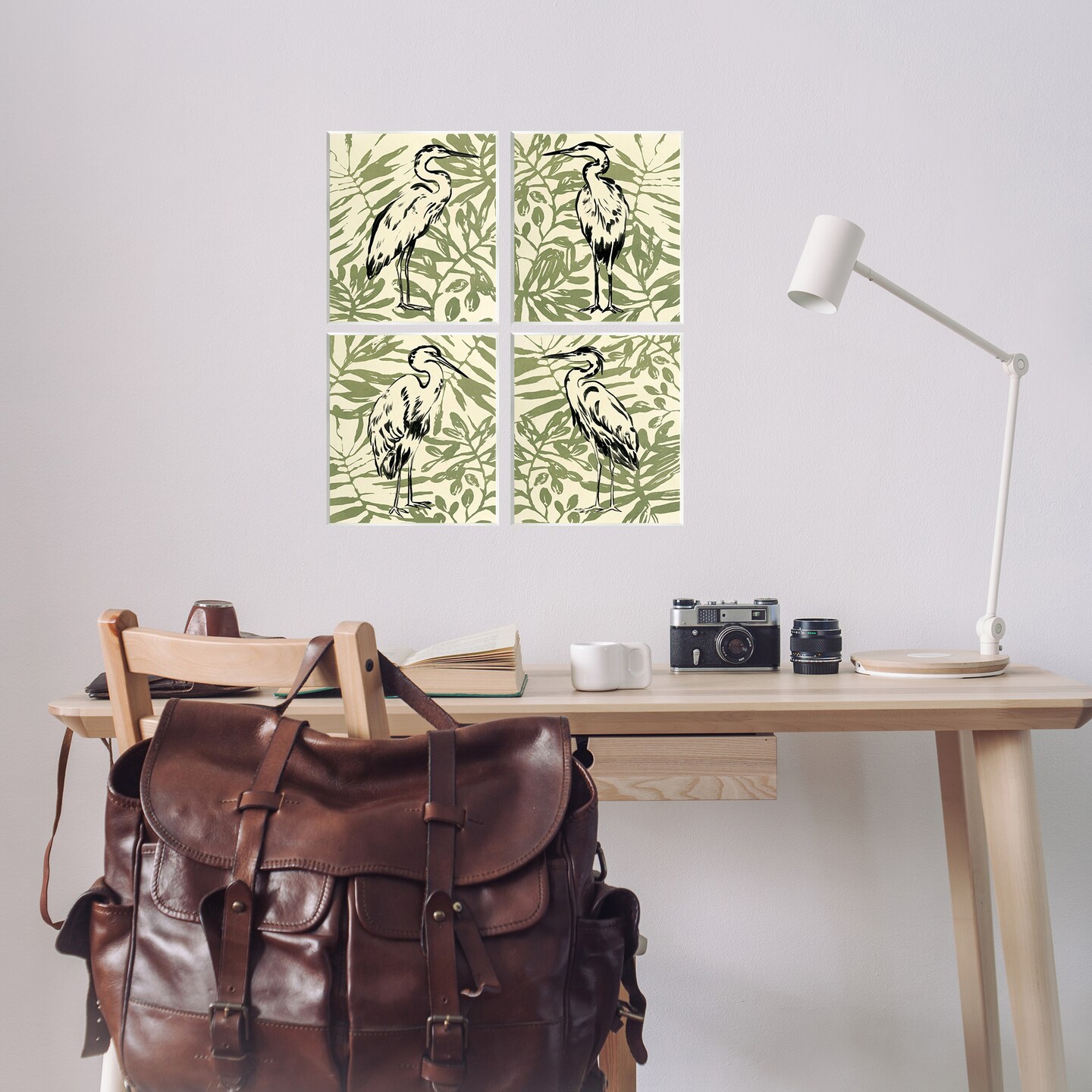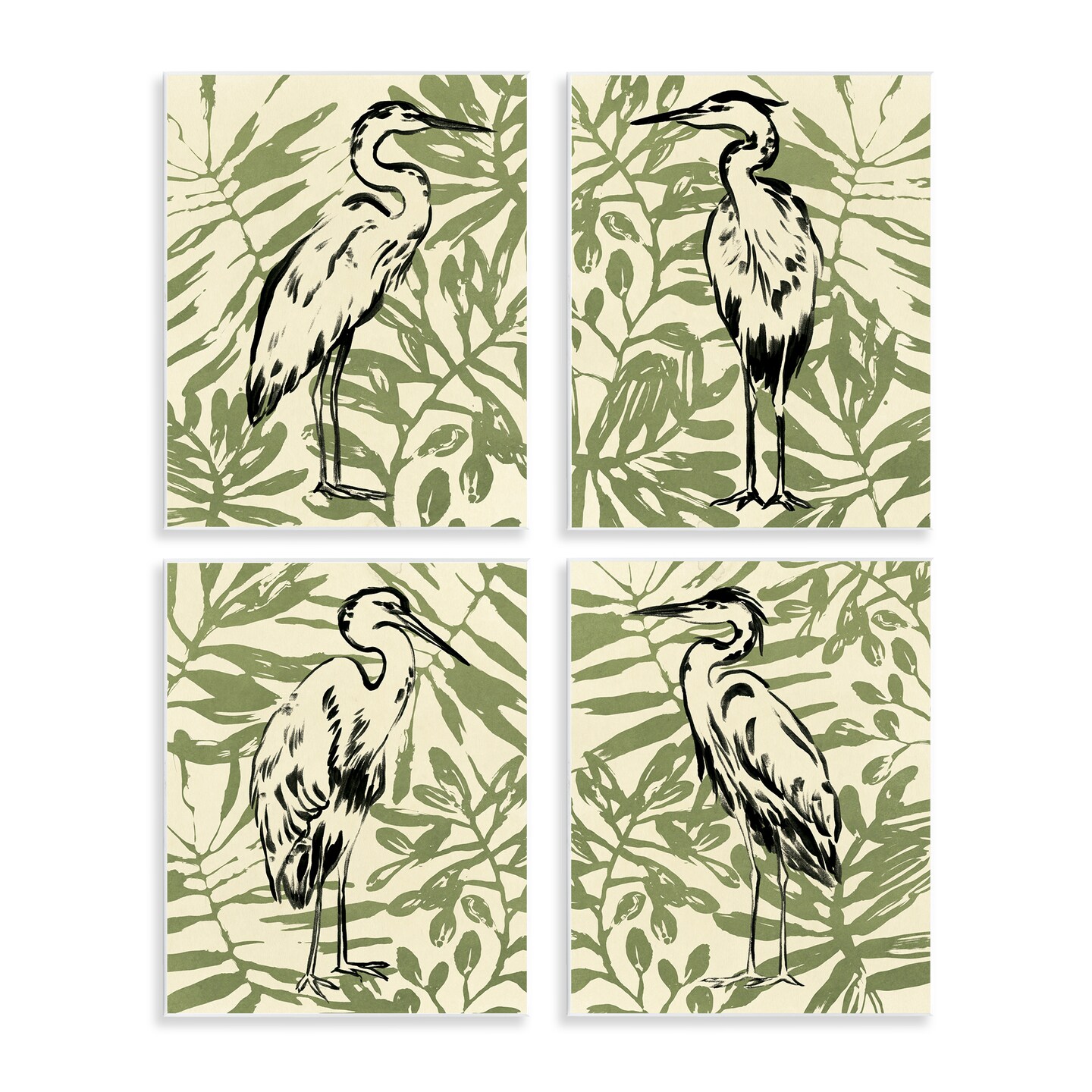 Stupell Industries Tropical Herons with Leaves 4pc Wall Plaque Art Set Design by June Erica Vess