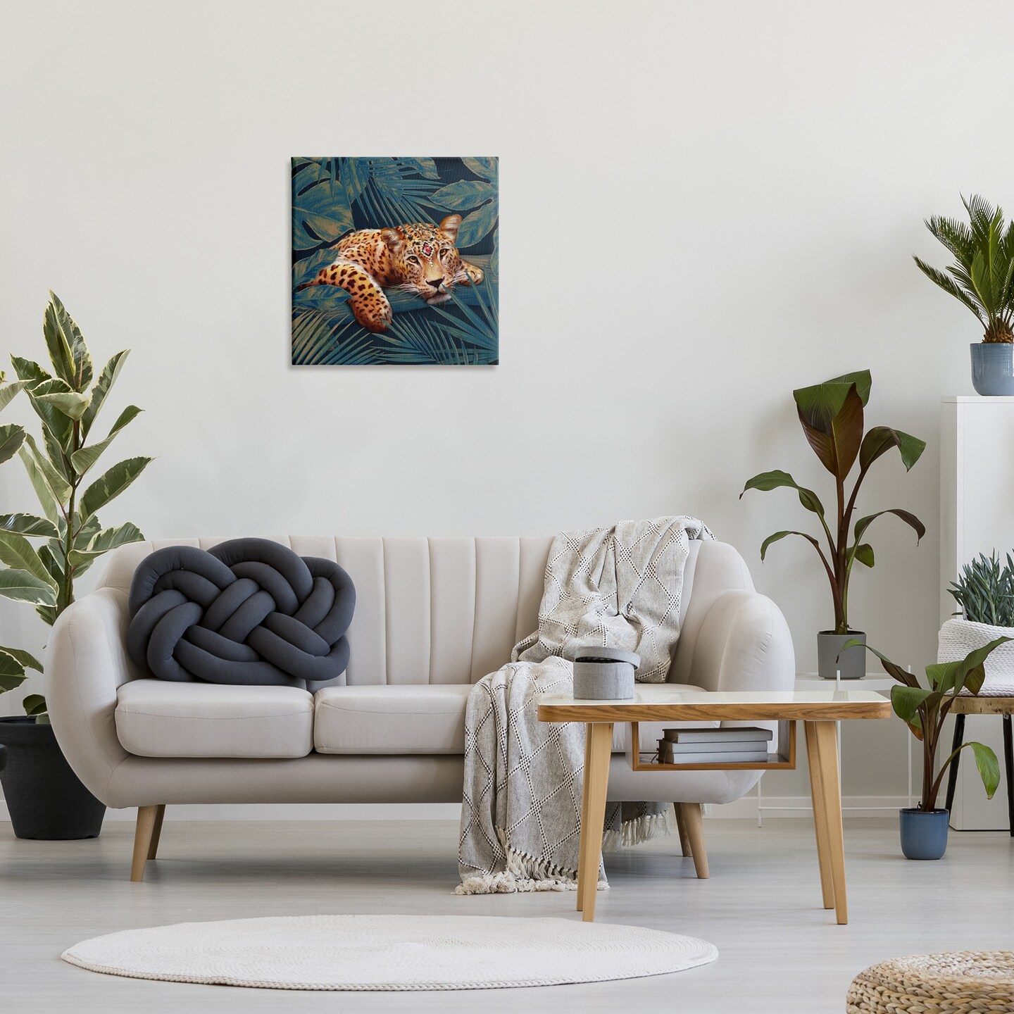 Stupell Industries Tropical Leopard with Glitz Gem Canvas Wall Art