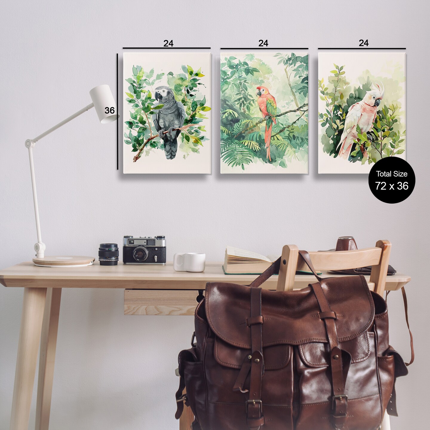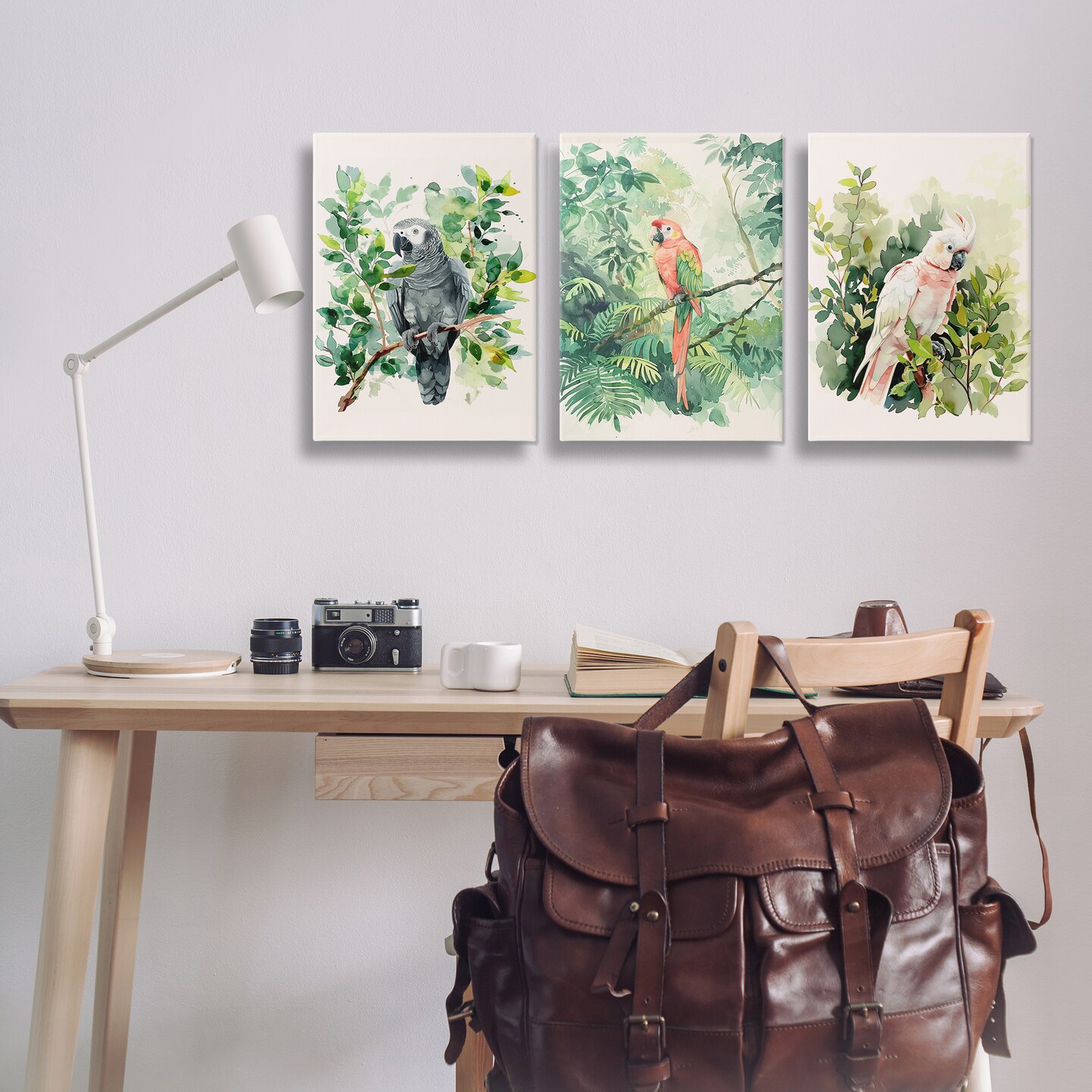 Stupell Industries Tropical Parrots in Jungle 3 pc Canvas Wall Art Set Design by LSR Design Studio