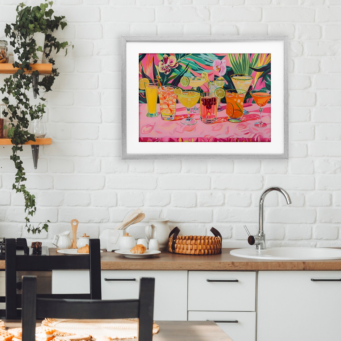 Stupell Industries Tropical Pink Cocktail Party Framed Print Under Glass, design by LSR Design Studio