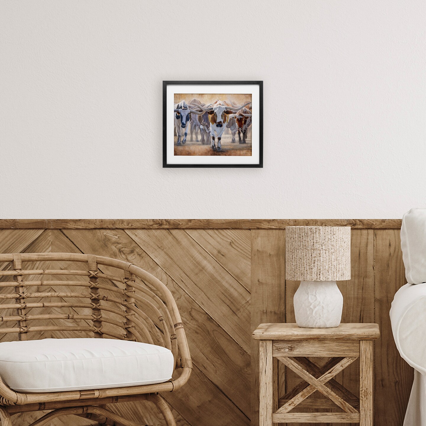 Stupell Industries Trotting Longhorn Cattle Framed Print Under Glass, design by James Corwin