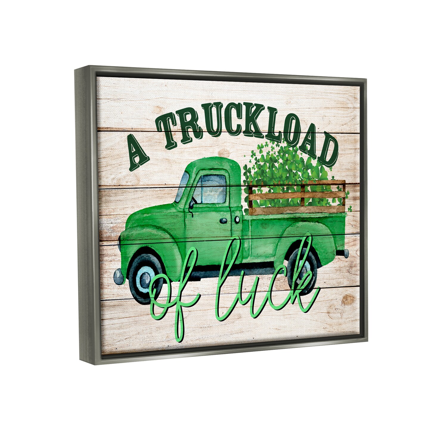 Stupell Industries Truckload Of Luck St Patrick's Day Farmhouse Black Framed Floater Canvas Wall Art