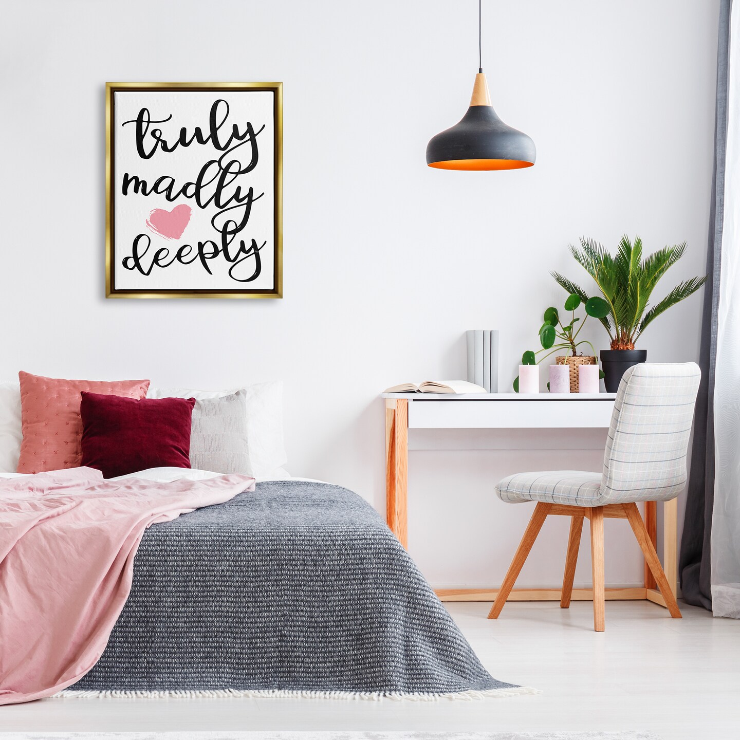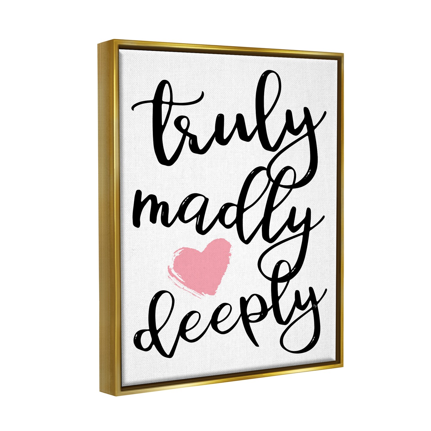 Stupell Industries Truly Madly Deeply Romantic Heart Black Framed Floater Canvas Wall Art