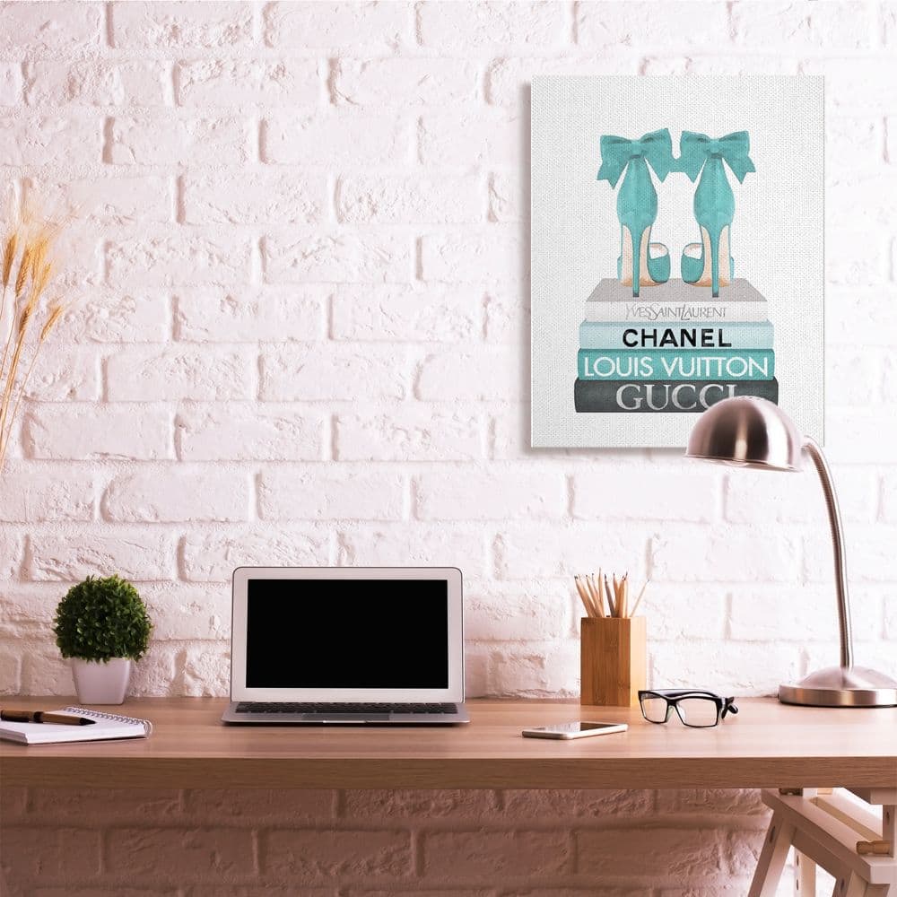 Stupell Industries Turquoise Bow Heels on Books Women's Fashion Canvas Wall Art