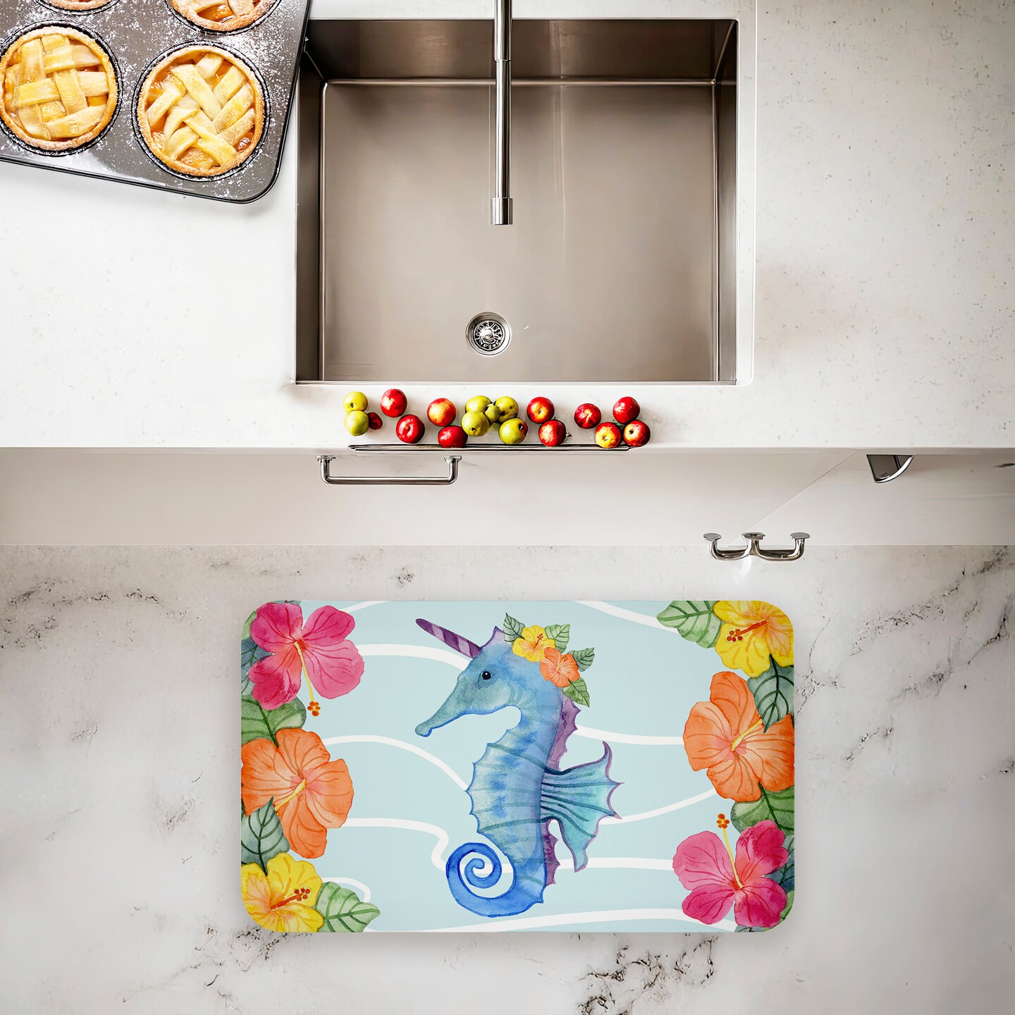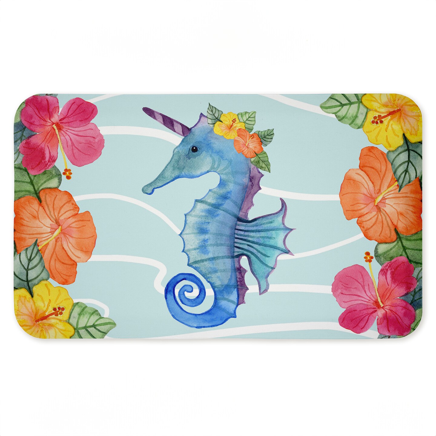 Stupell Industries Unicorn Seahorse & Hibiscus Printed Anti-Fatigue Floor Mat, design by Audrey Jeanne Roberts, 30"x18"