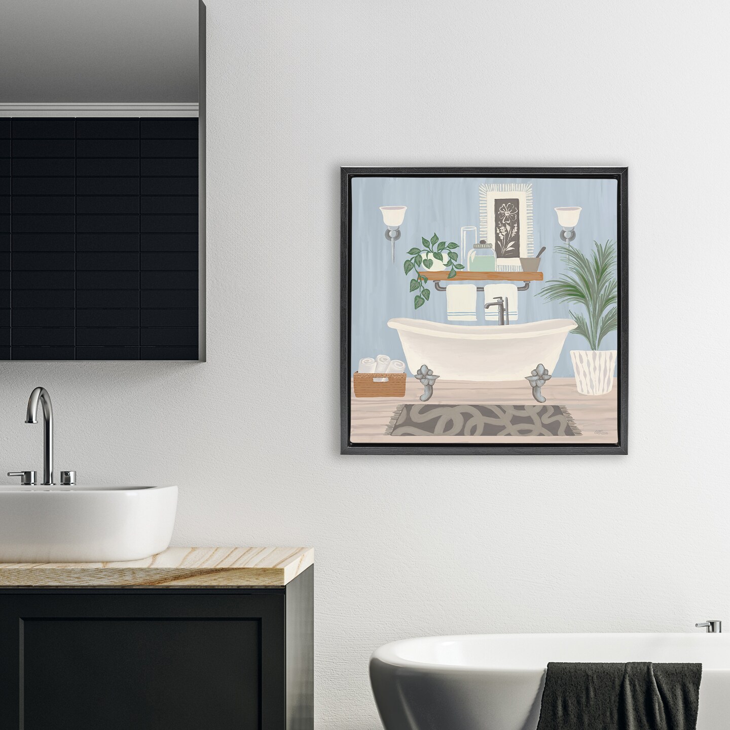 Stupell Industries Unwind and Refresh Bathtub Floating Frame, design by Cat Thurman Designs