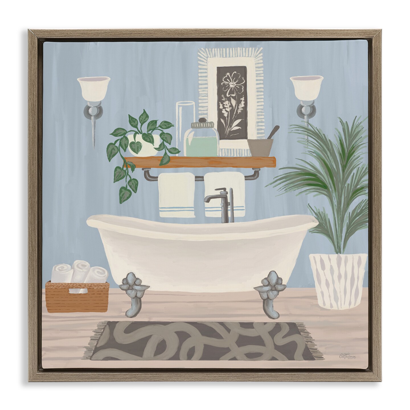 Stupell Industries Unwind and Refresh Bathtub Floating Frame, design by Cat Thurman Designs