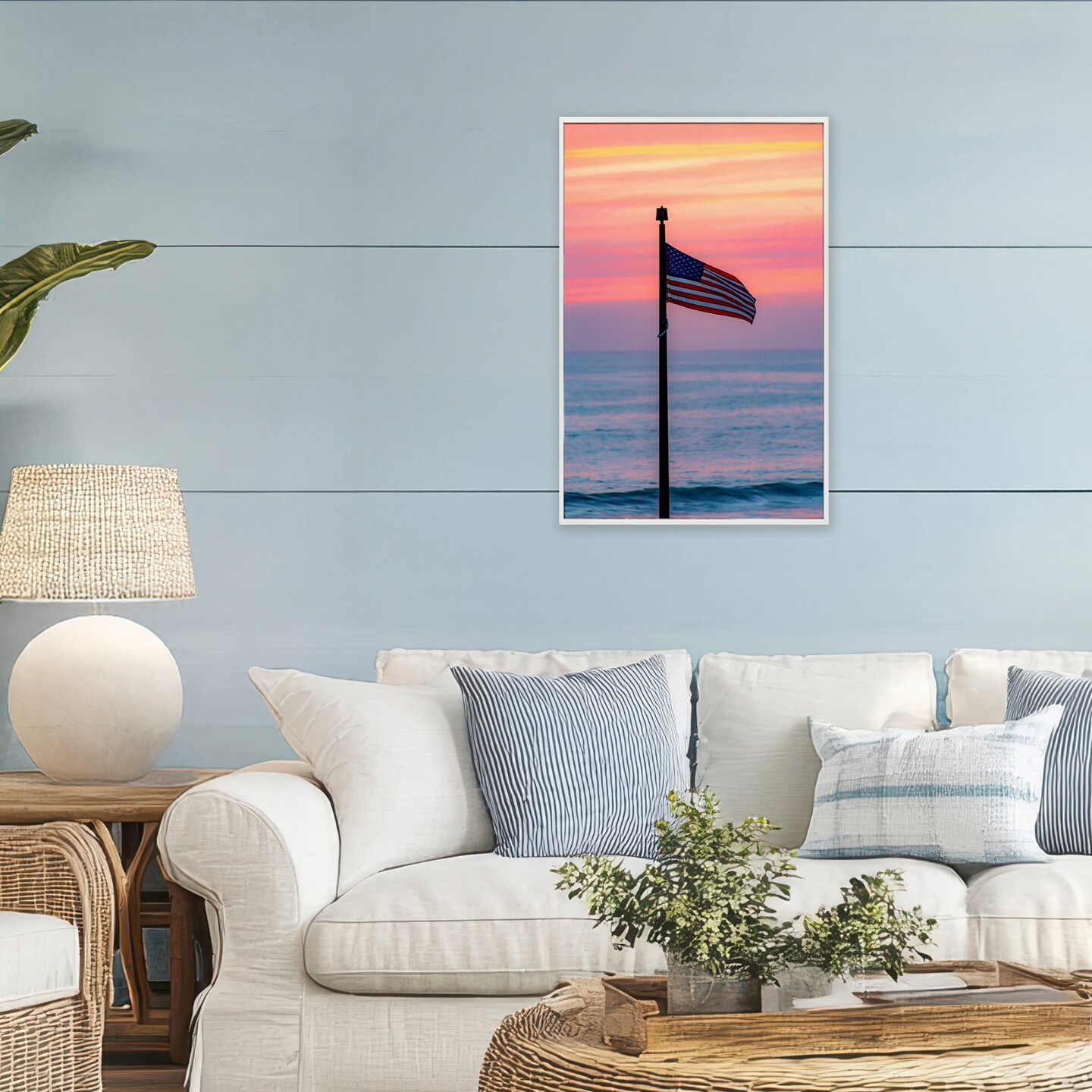 Stupell Industries USA Flag Against Sunset Framed Giclee, design by Jeff Poe Photography