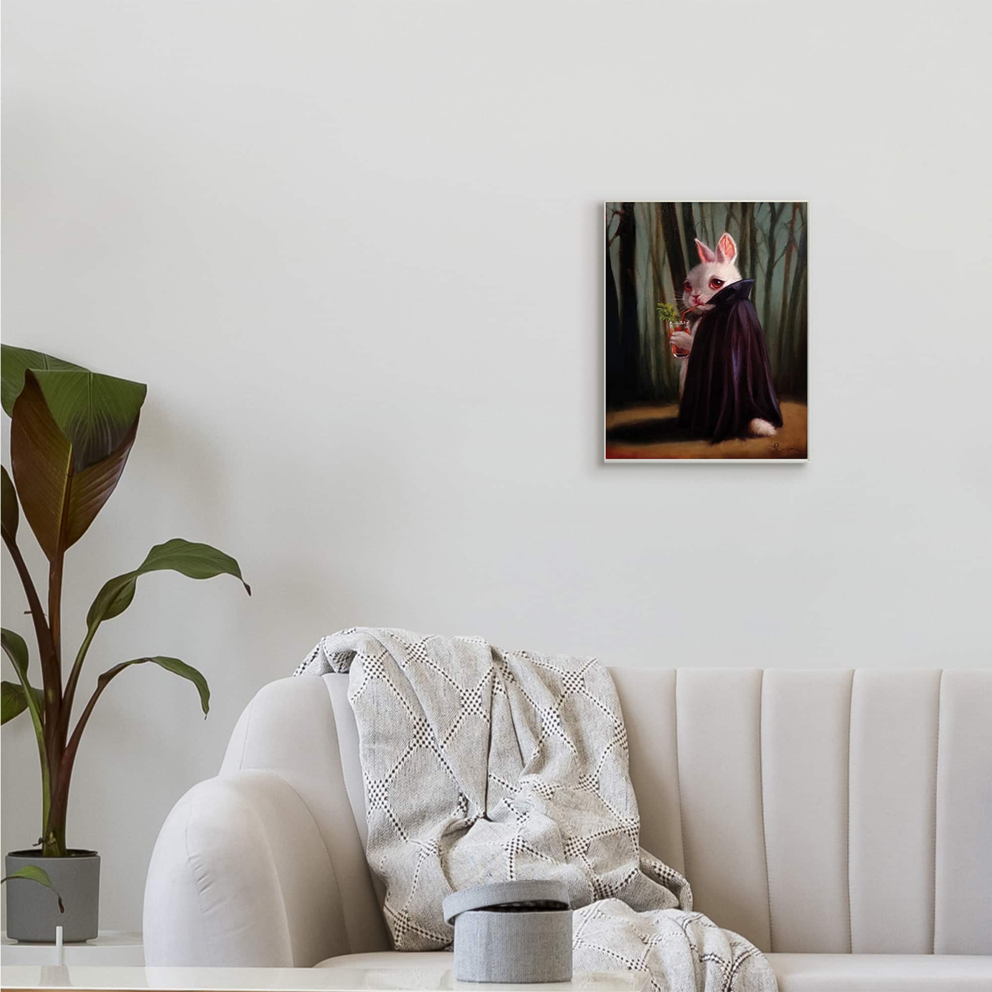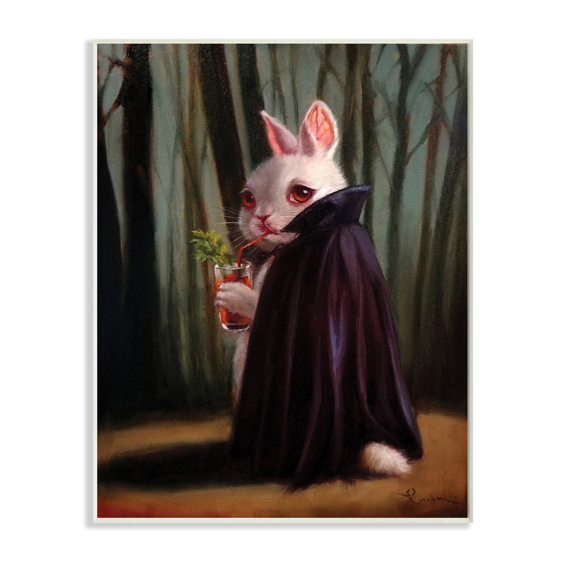 Stupell Industries Vampire Rabbit Drinking Bloody Mary Dark Forest Wood Wall Plaque