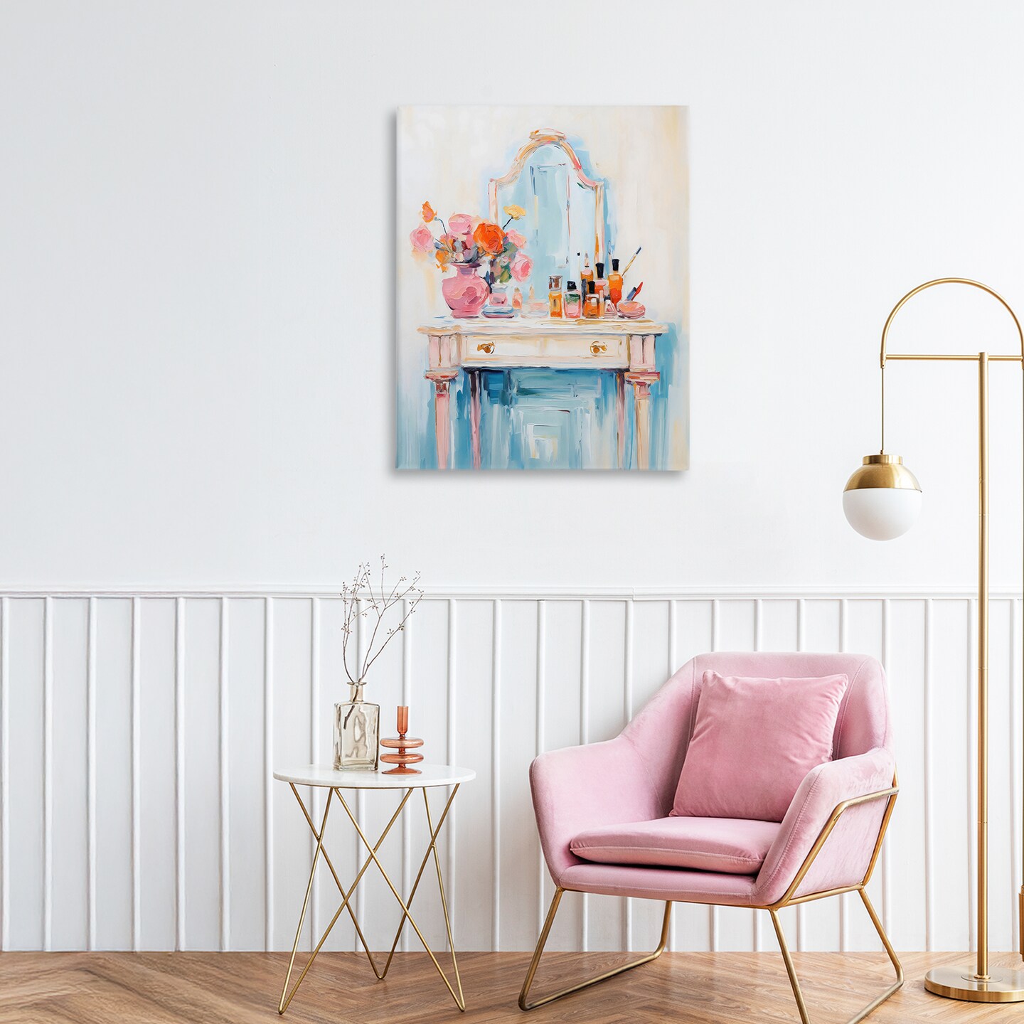 Stupell Industries Vanity with Cosmetic Bottles Canvas Wall Art, design by Creative Studio