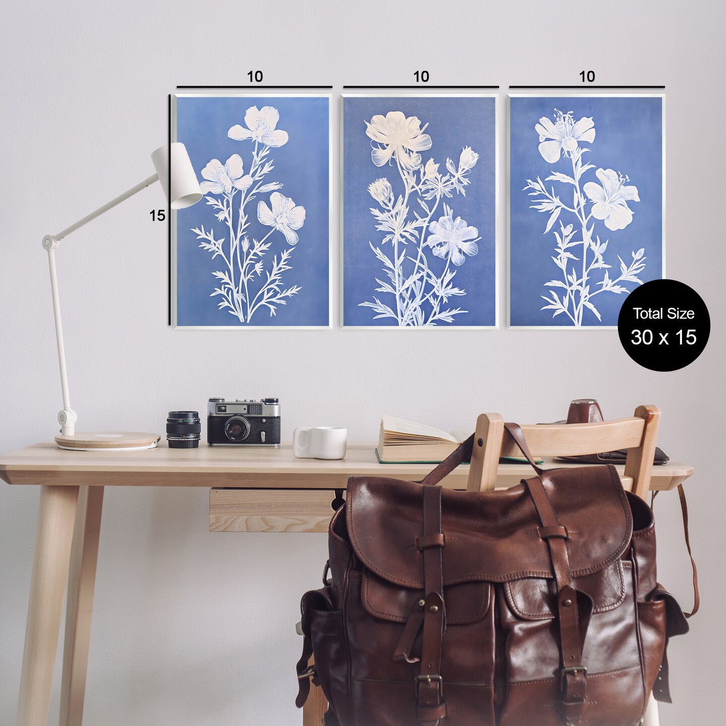 Stupell Industries Varied Cerulean Botanicals 3pc Wall Plaque Art Set Design by Petal Prints Design