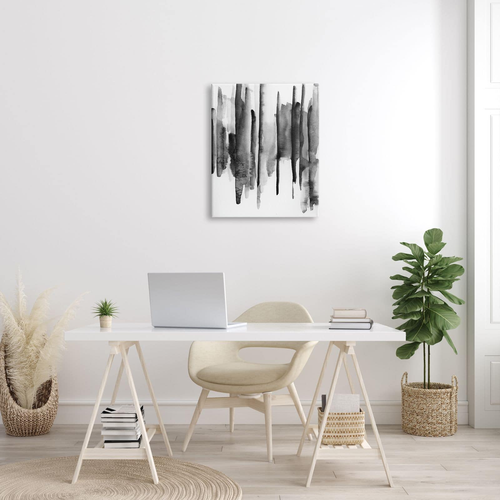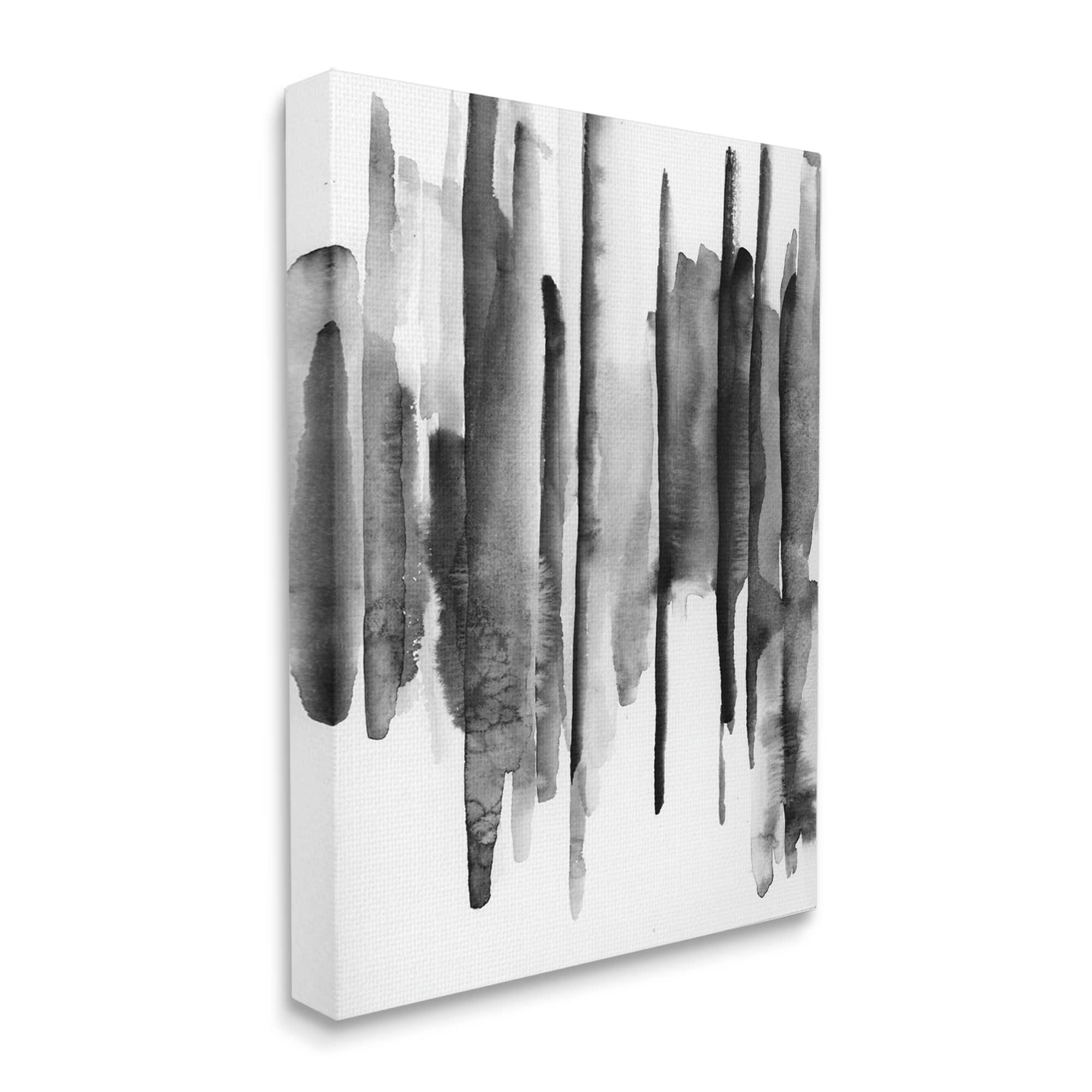 Stupell Industries Vertical Black Ink Strokes Abstract Watercolor Over White Canvas Wall Art