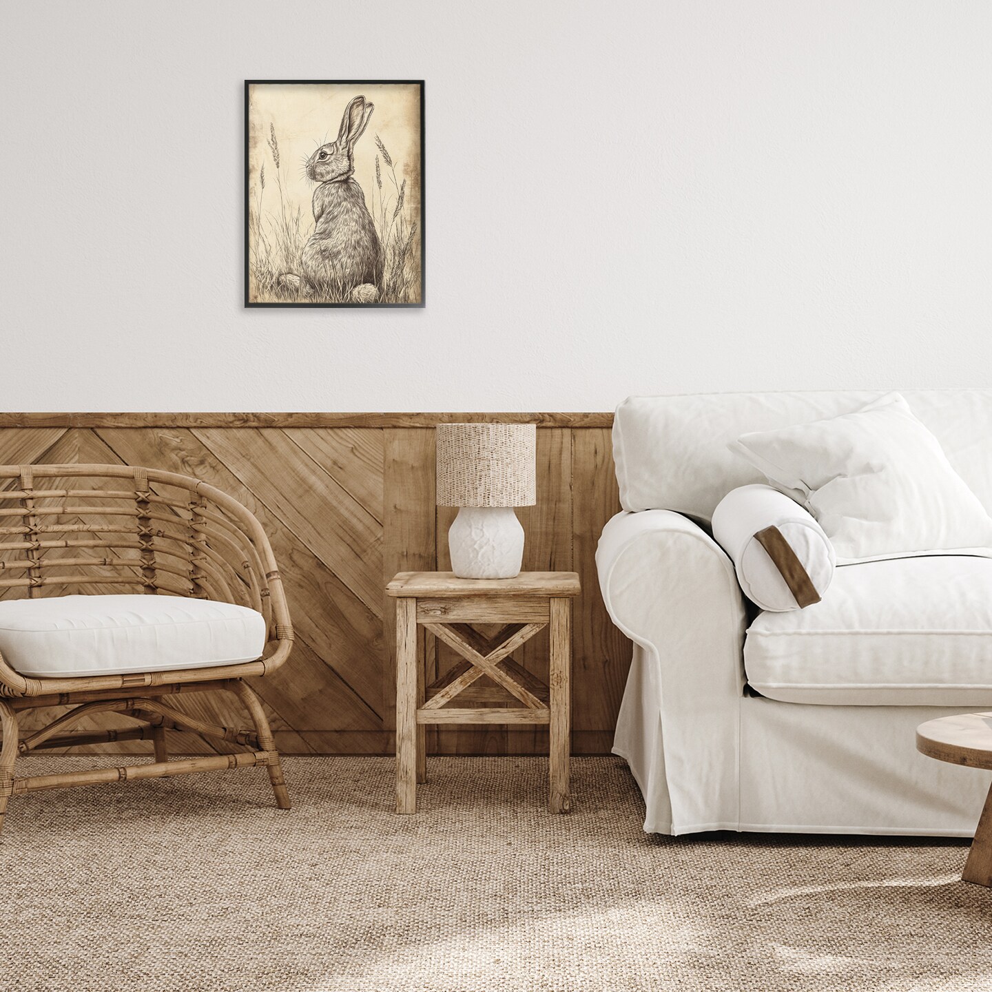 Stupell Industries Vintage Aged Bunny Portrait Framed Giclee, design by Petal Prints Design