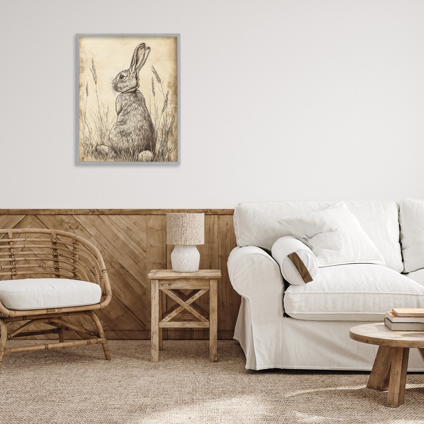 Stupell Industries Vintage Aged Bunny Portrait Framed Giclee, design by Petal Prints Design
