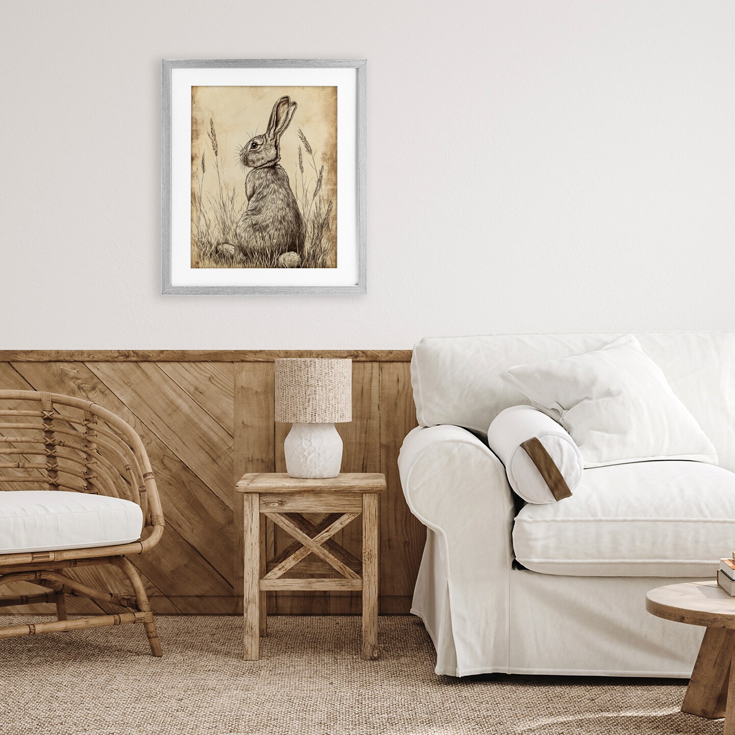 Stupell Industries Vintage Aged Bunny Portrait Framed Print Under Glass, design by Petal Prints Design