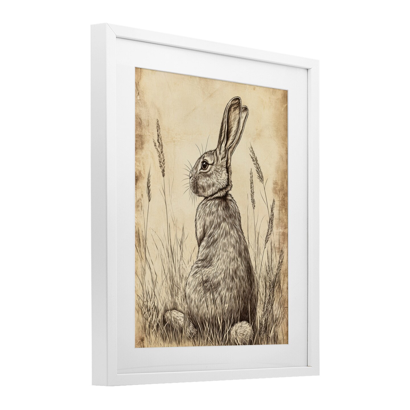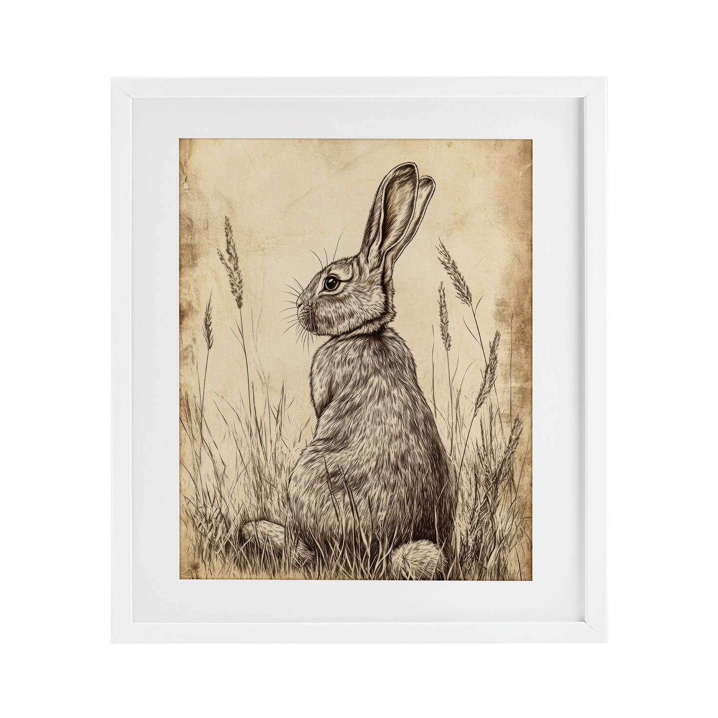 Stupell Industries Vintage Aged Bunny Portrait Framed Print Under Glass, design by Petal Prints Design