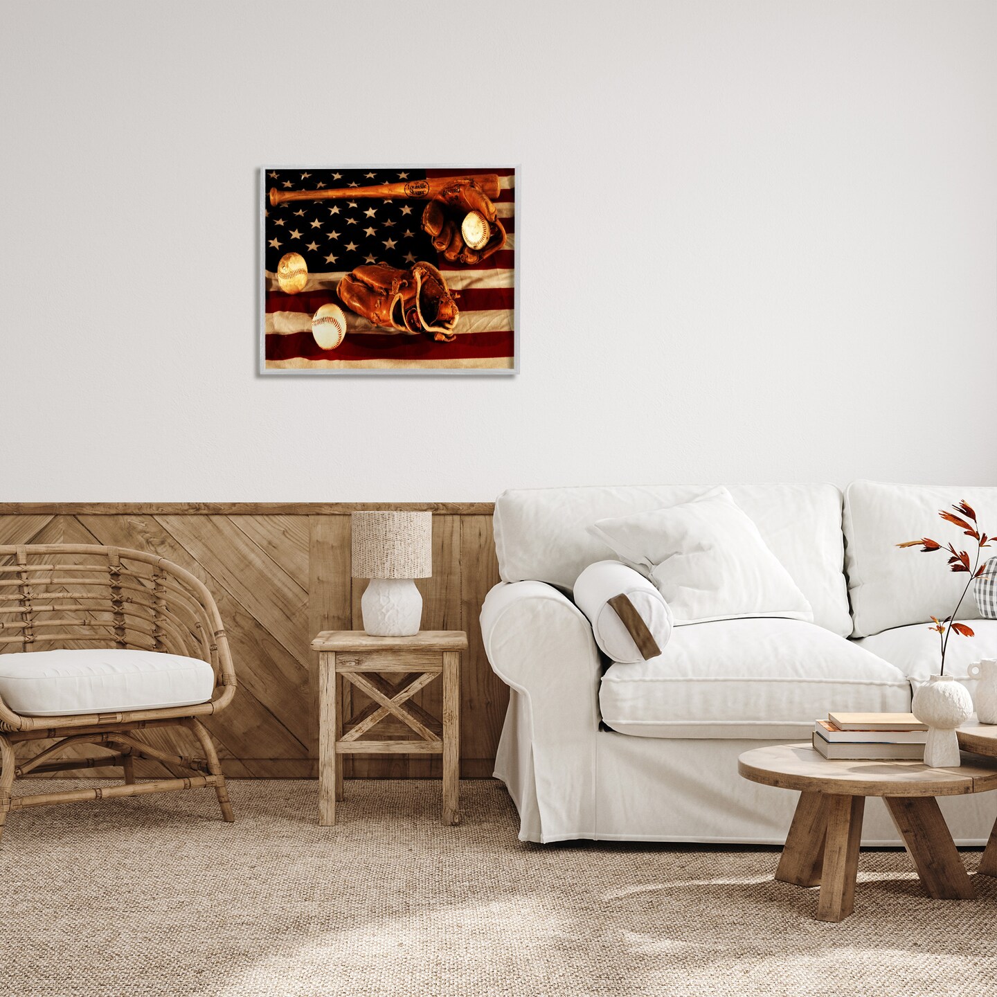 Stupell Industries Vintage American Flag Baseball Photo Framed Giclee Art