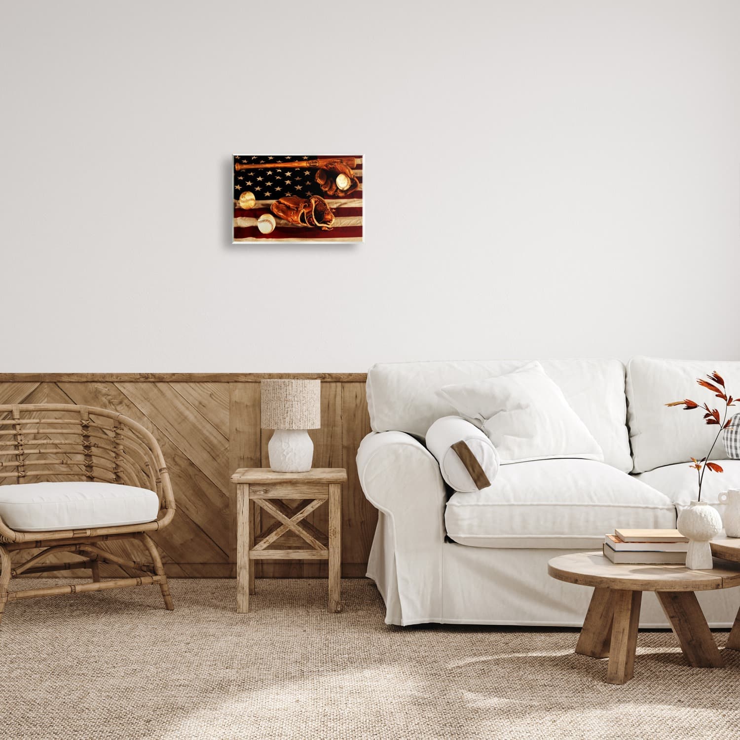 Stupell Industries Vintage American Flag Baseball Photo Wall Plaque Art