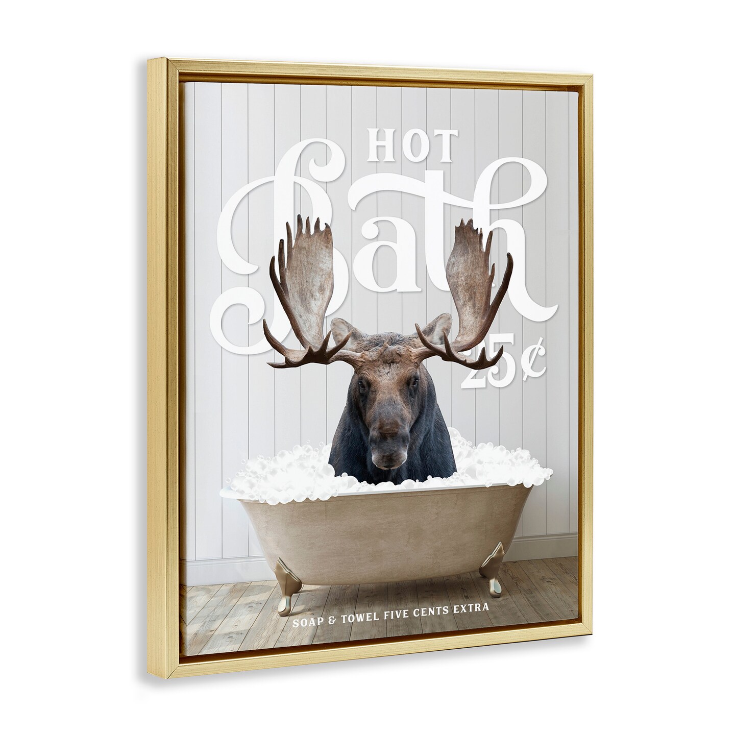 Stupell Industries Vintage Bathroom Moose Ad Framed Floater Canvas Wall Art
