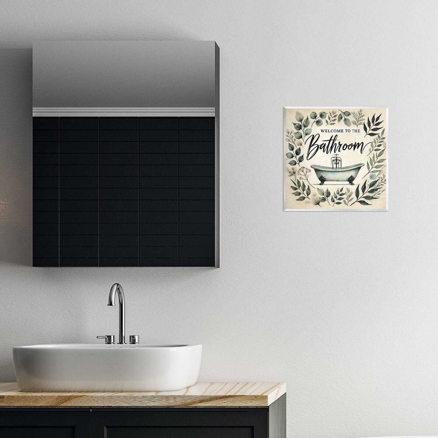 Stupell Industries Vintage Bathroom Welcome Wall Plaque, design by Erin Clark