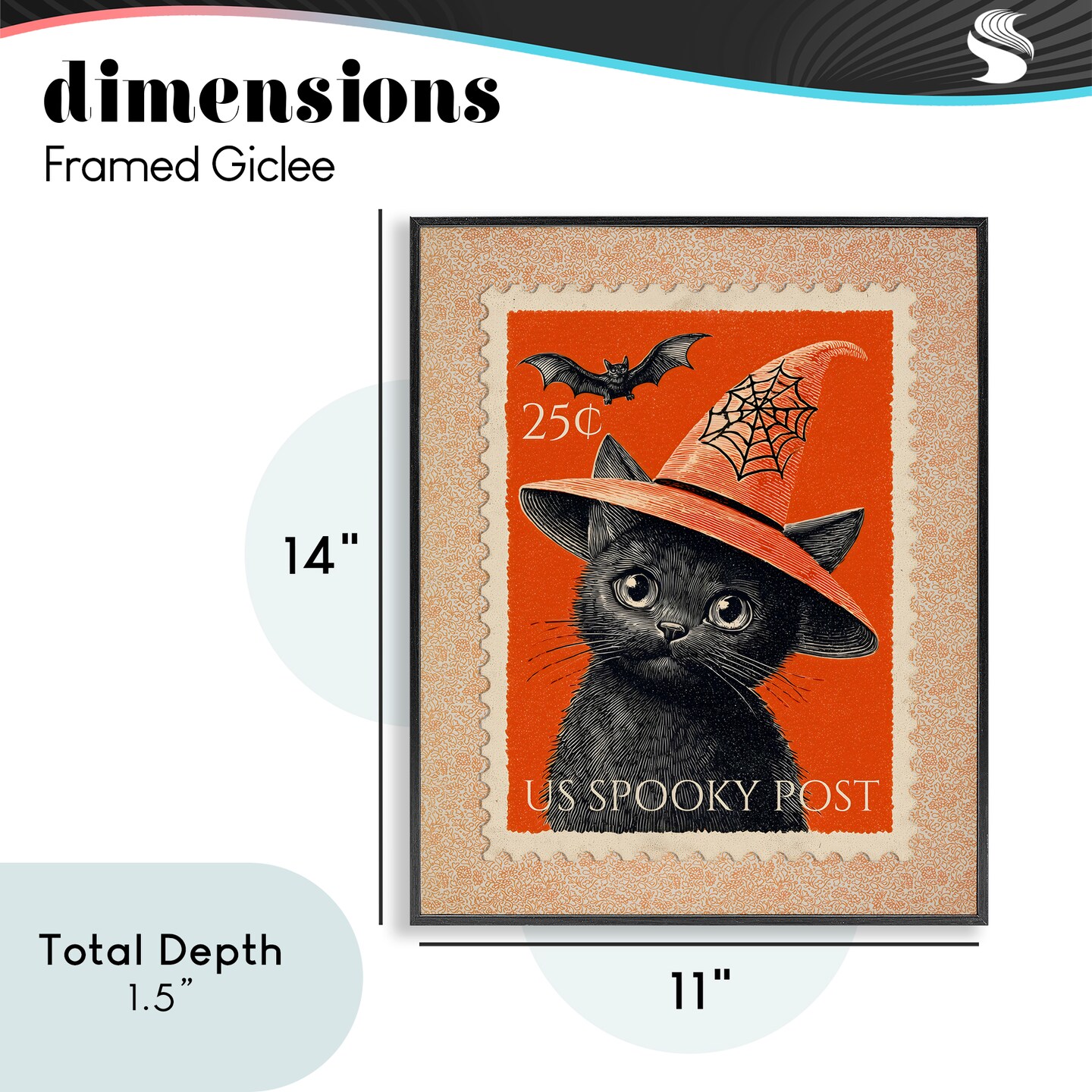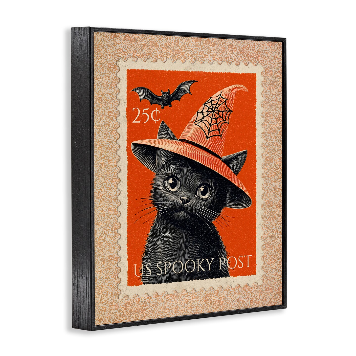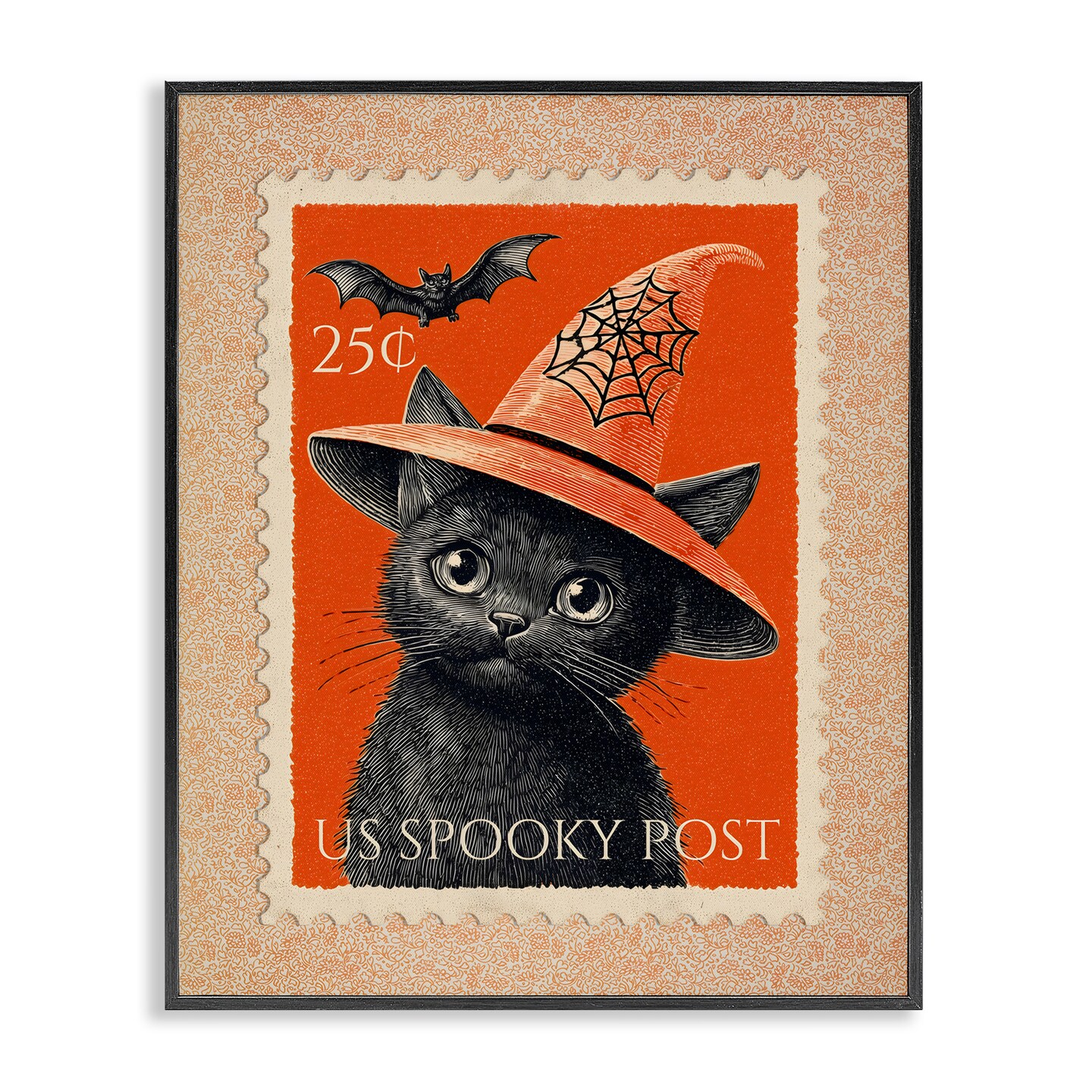 Stupell Industries Vintage Black Cat Stamp Framed Giclee, design by Arlington Prints
