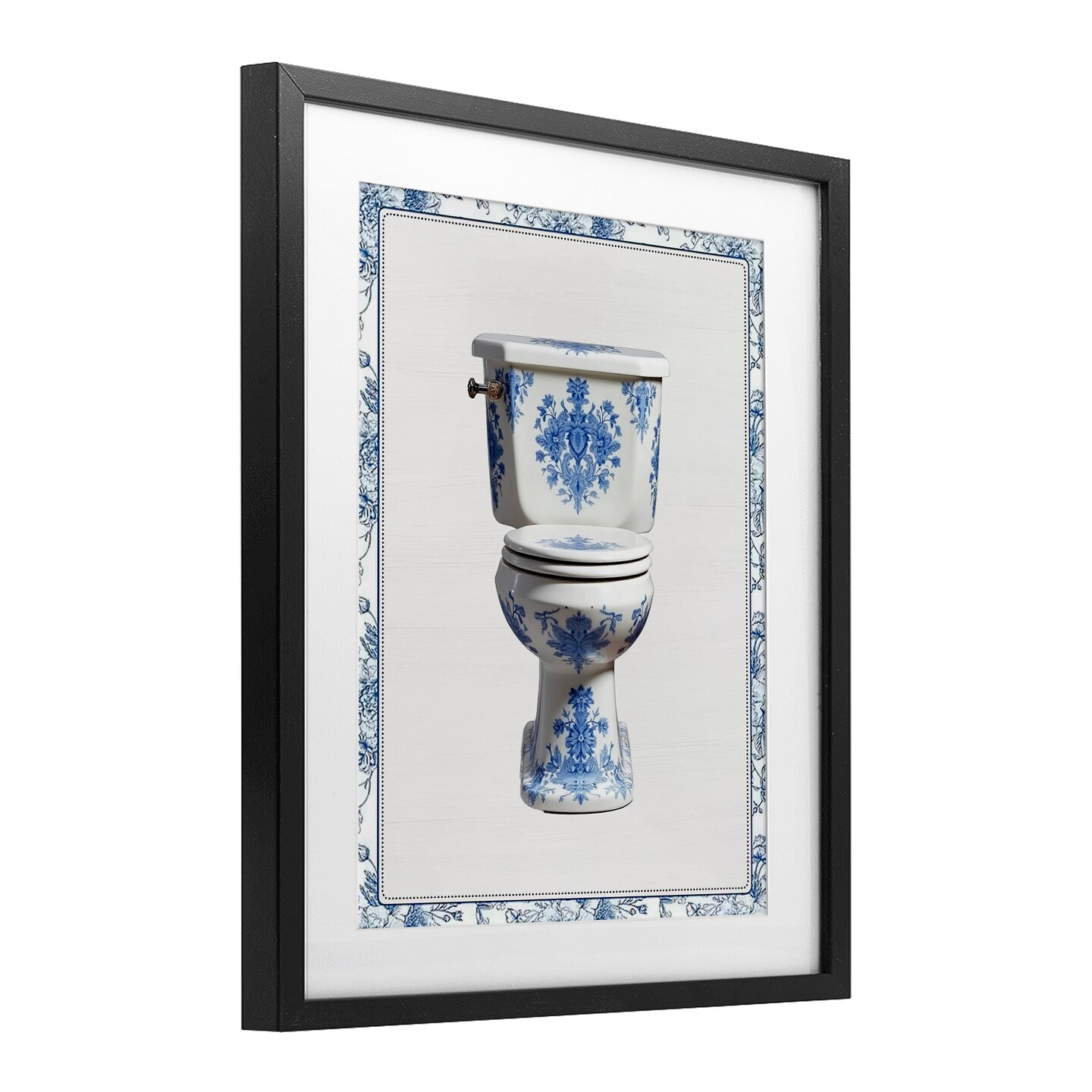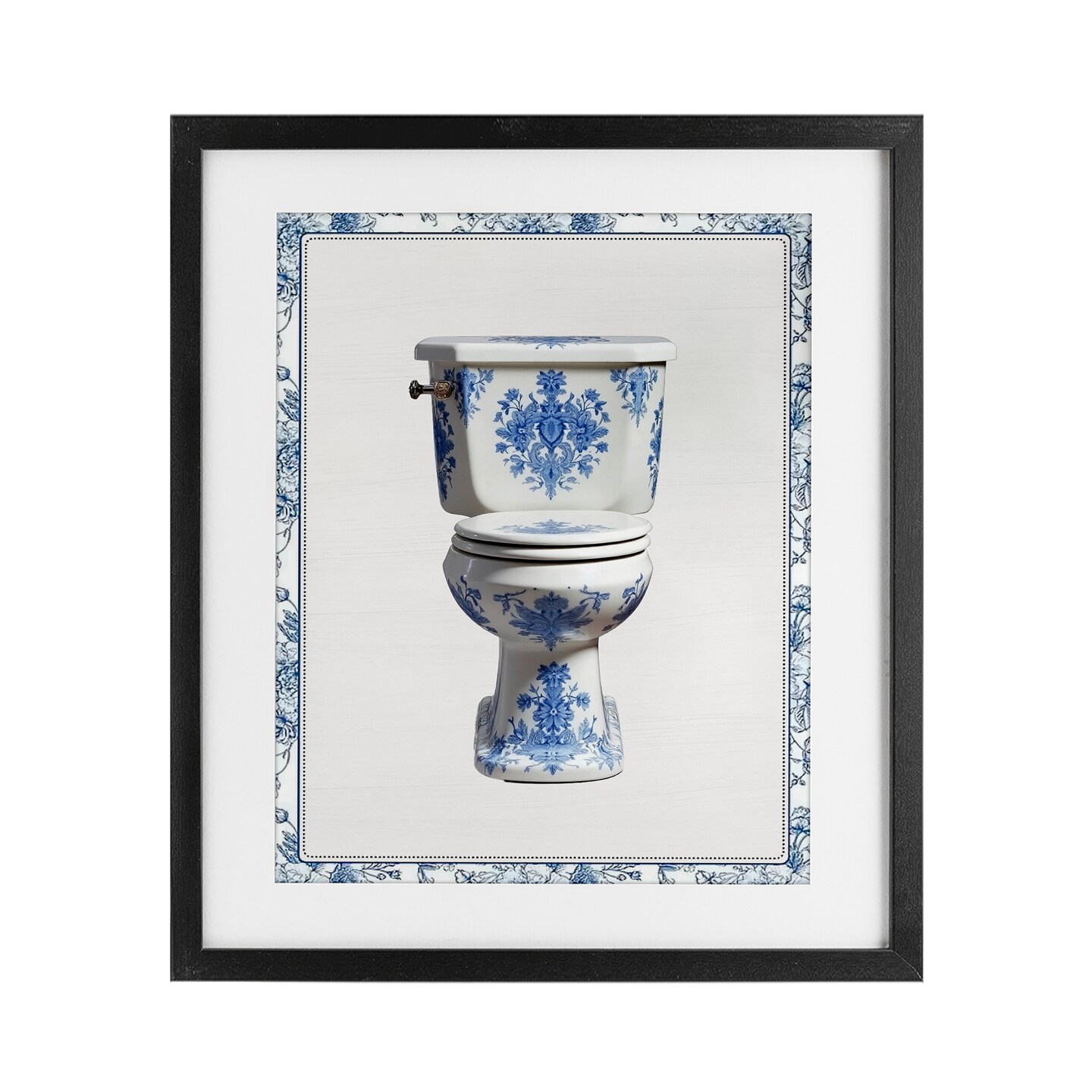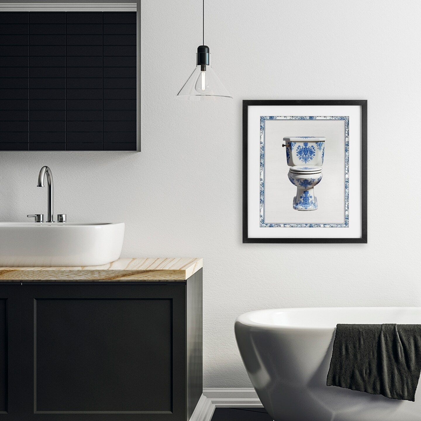 Stupell Industries Vintage Chinoiserie Toilet Framed Print Under Glass, design by Lettered and Lined