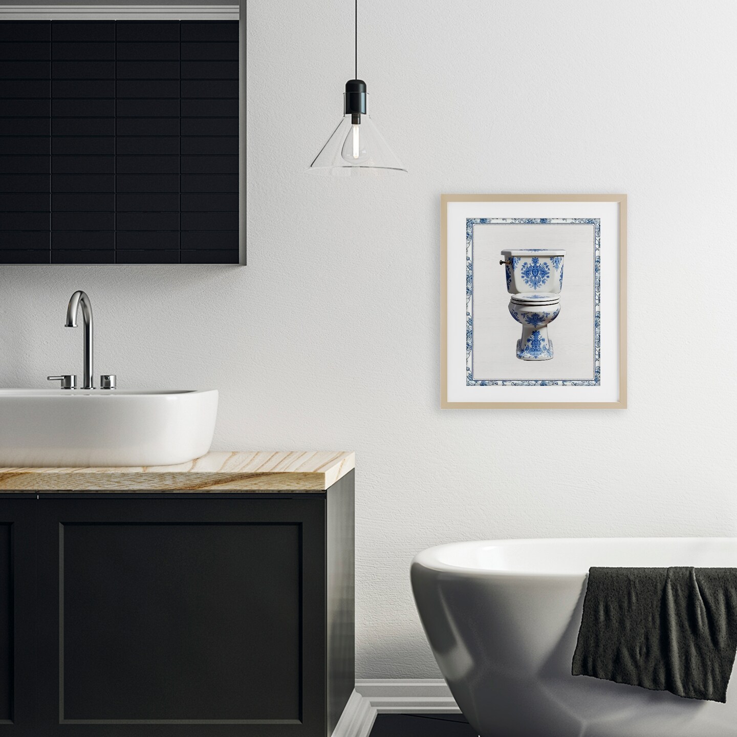 Stupell Industries Vintage Chinoiserie Toilet Framed Print Under Glass, design by Lettered and Lined