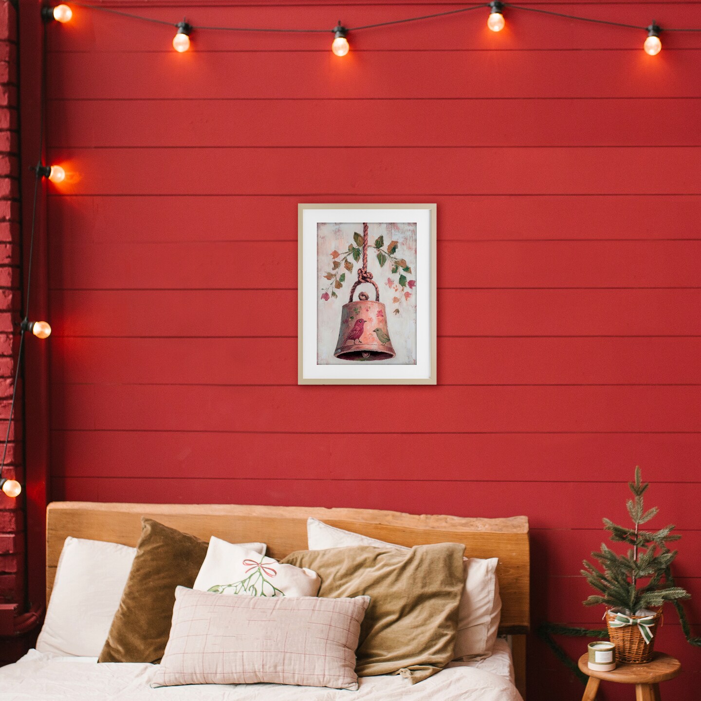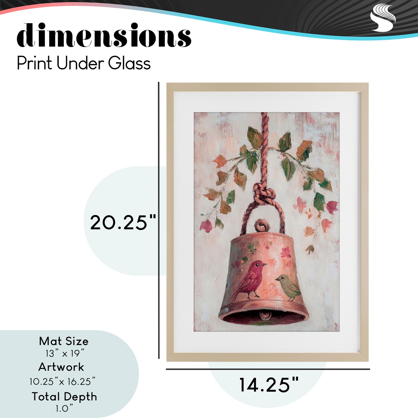 Stupell Industries Vintage Christmas Bell Framed Print Under Glass, design by Petal Prints Design