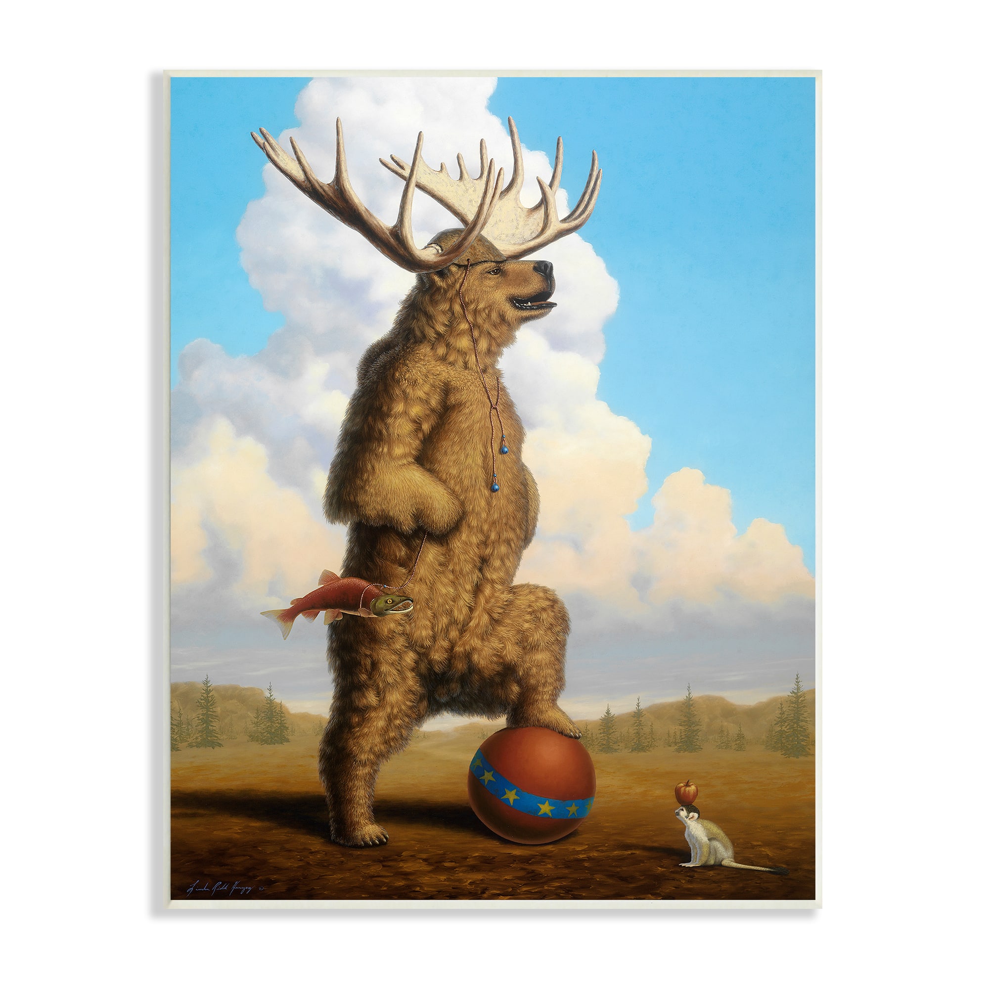 Stupell Industries Vintage Circus Bear in Horned Animal Helmet Wall Plaque