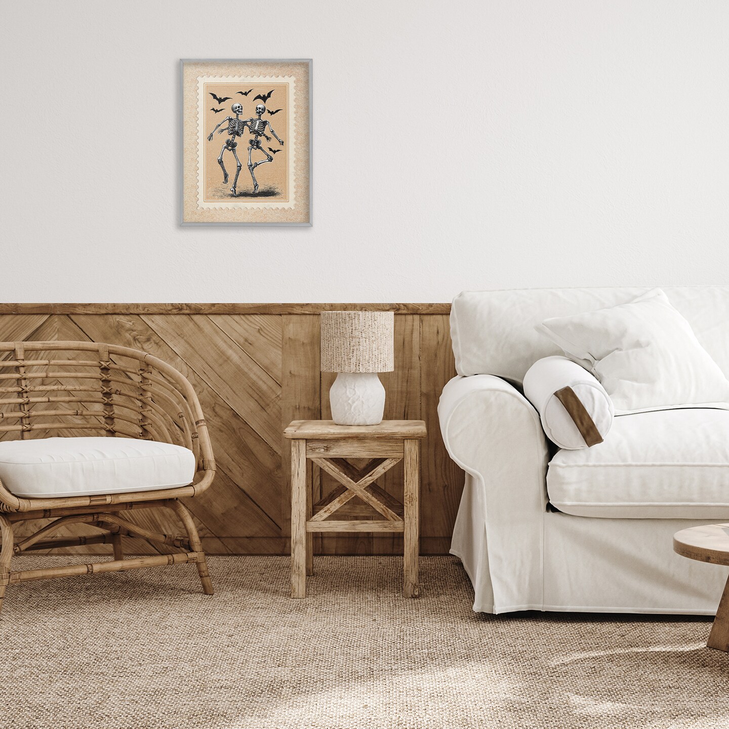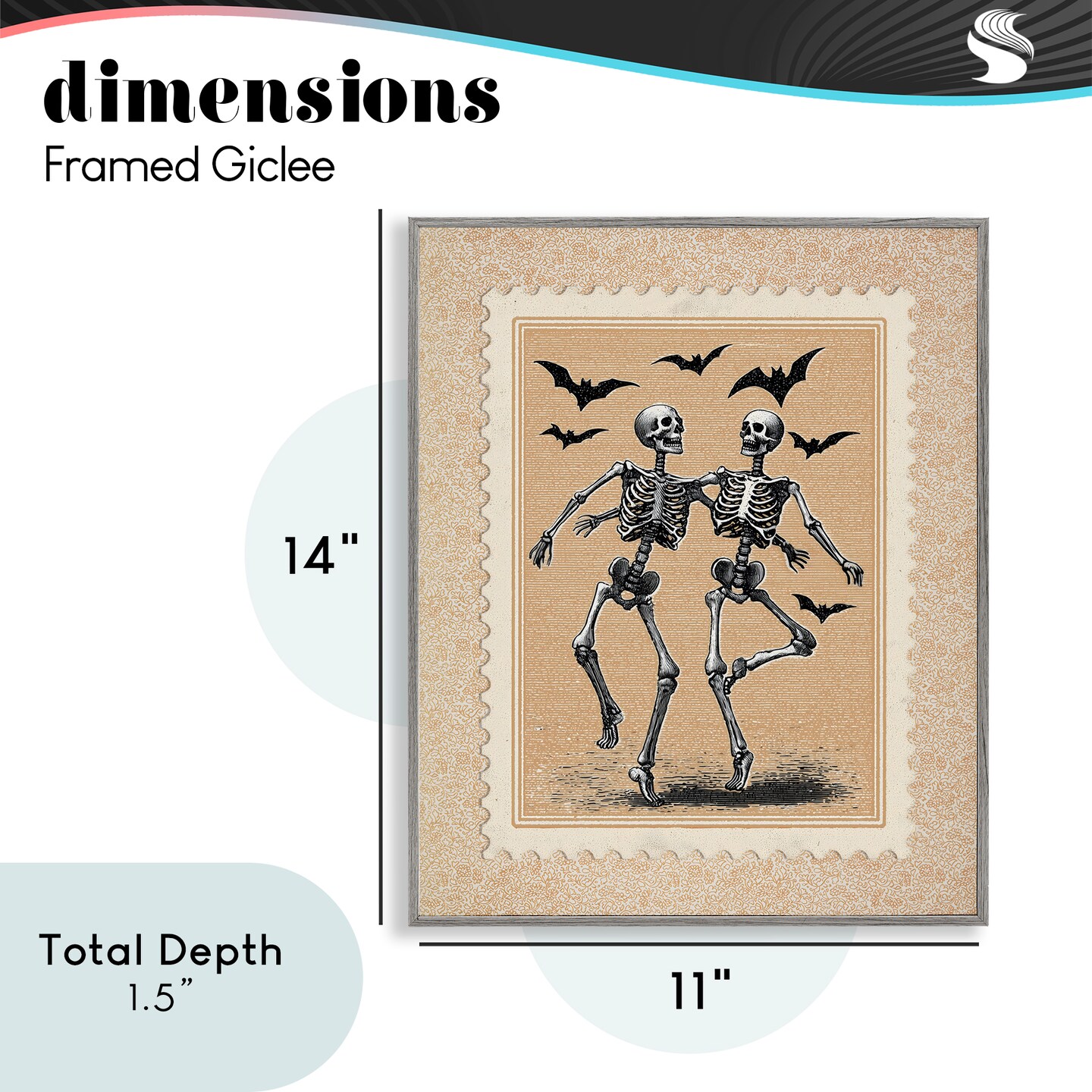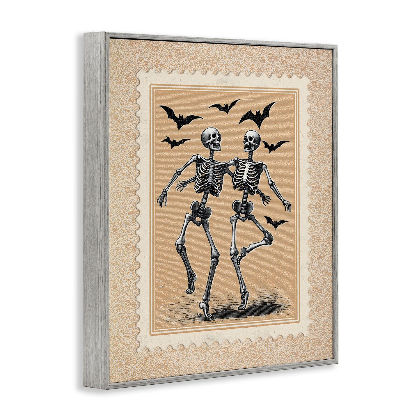 Stupell Industries Vintage Dancing Skeletons Stamp Framed Giclee, design by Arlington Prints