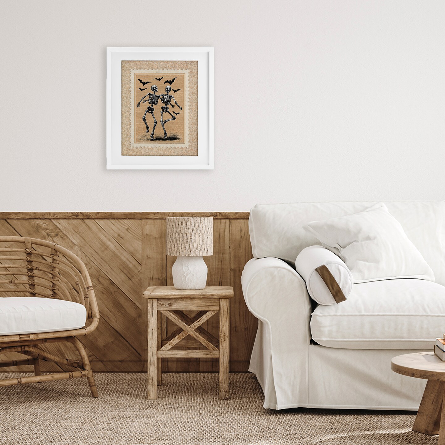 Stupell Industries Vintage Dancing Skeletons Stamp Framed Print Under Glass, design by Arlington Prints
