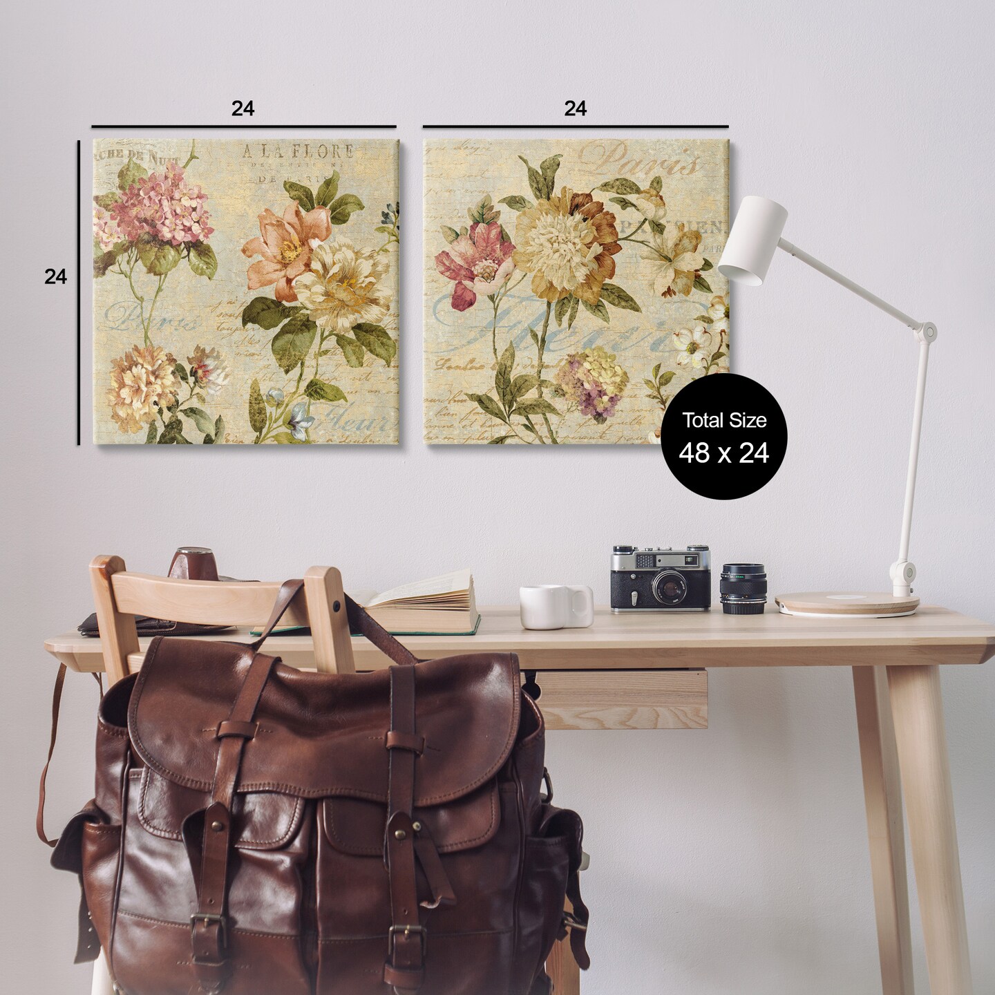 Stupell Industries Vintage French Floral with Script Canvas Wall Art