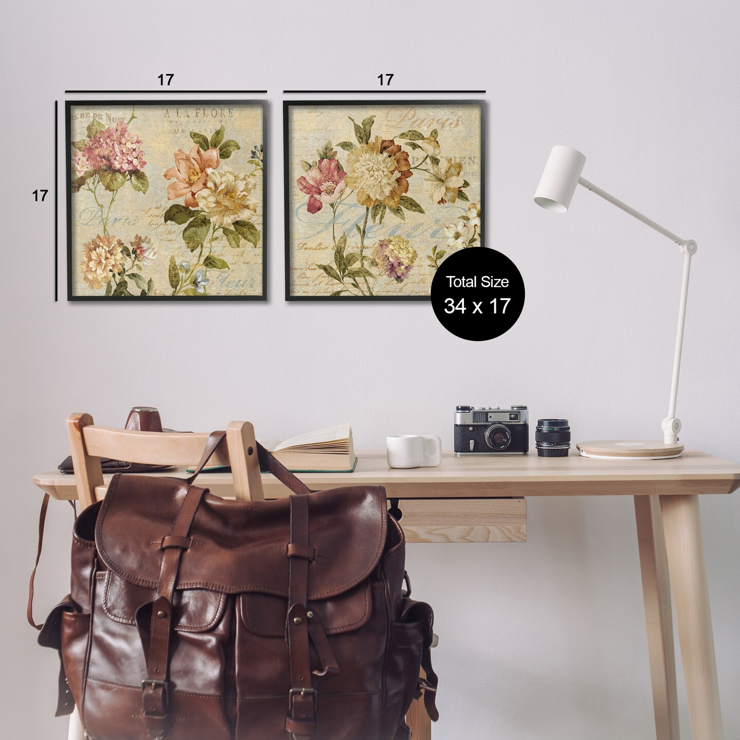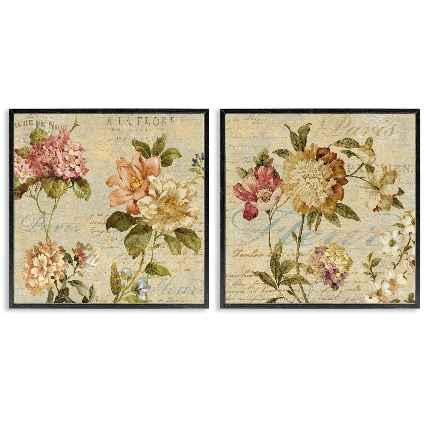 Stupell Industries Vintage French Floral with Script Framed Giclee Art