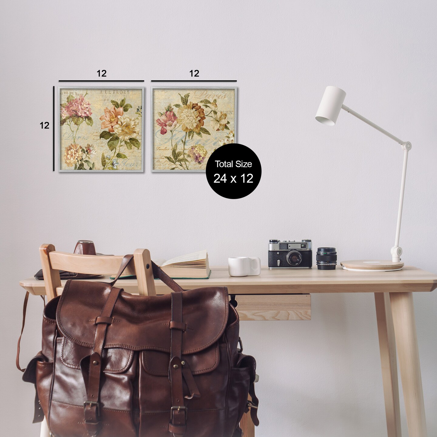 Stupell Industries Vintage French Floral with Script Framed Giclee Art