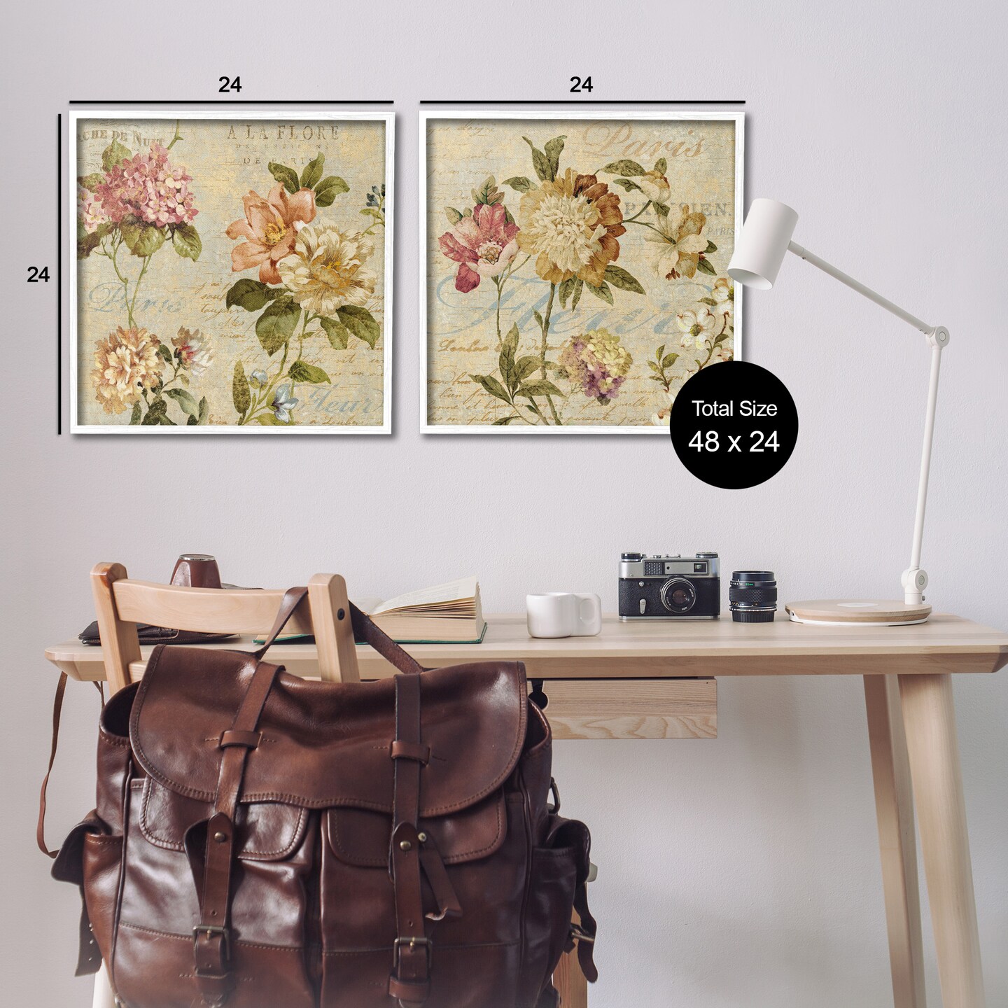 Stupell Industries Vintage French Floral with Script Framed Giclee Art