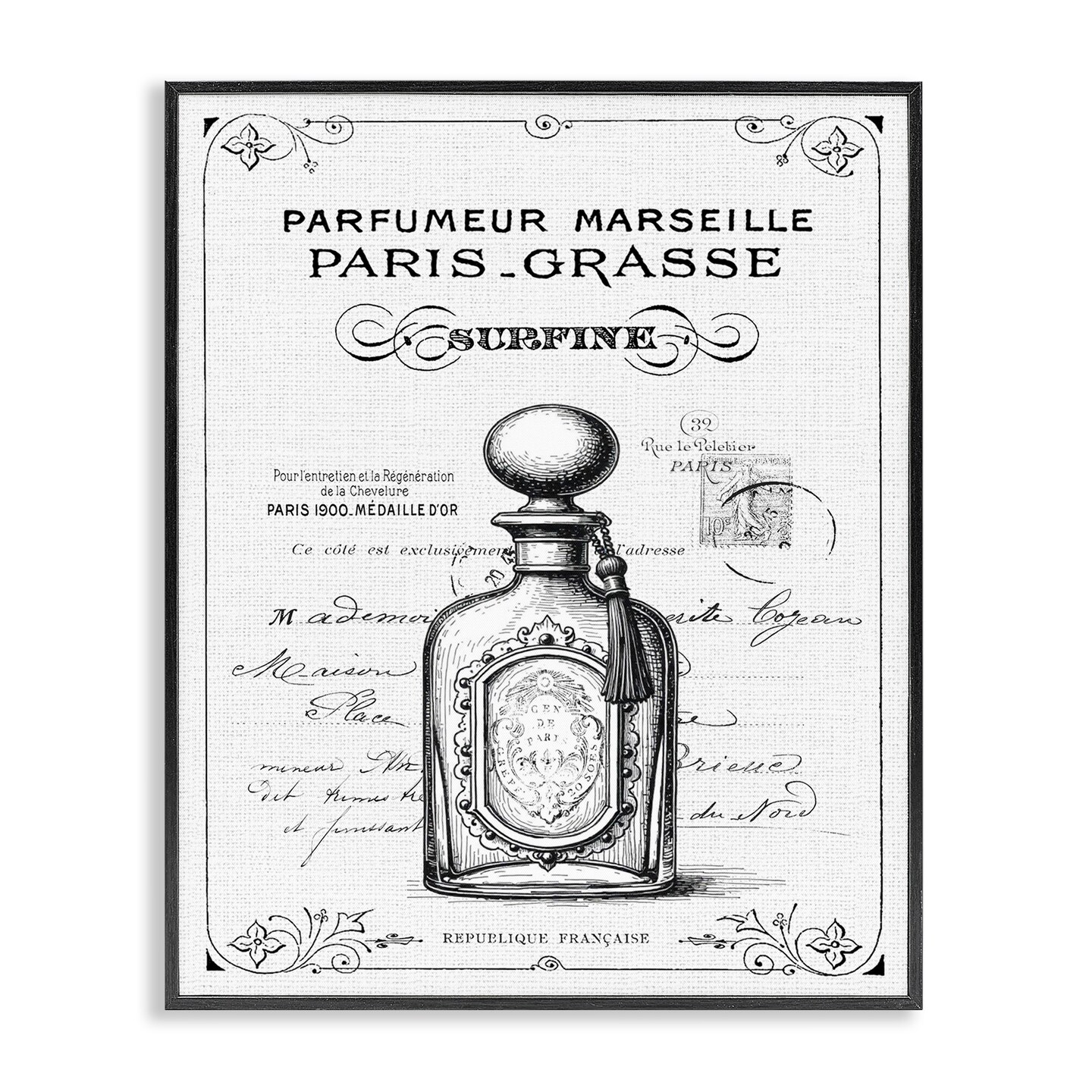 Stupell Industries Vintage French Luxury Bottle Framed Giclee, design by Lettered and Lined