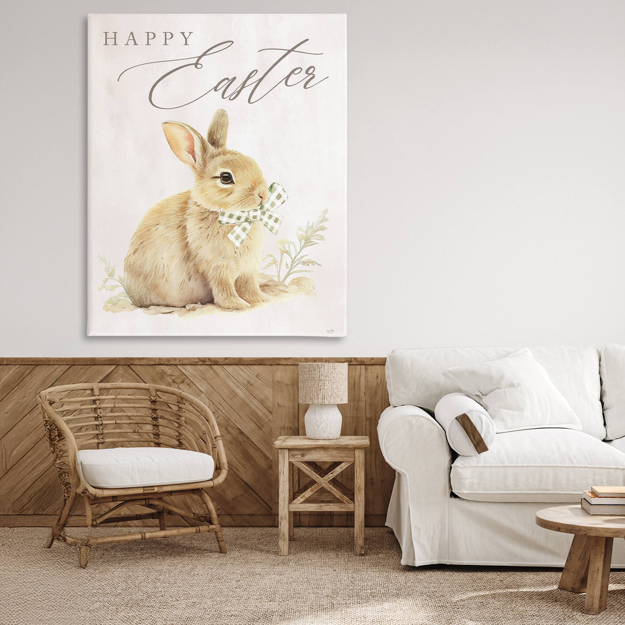 Stupell Industries Vintage Happy Easter Bunny Canvas Wall Art