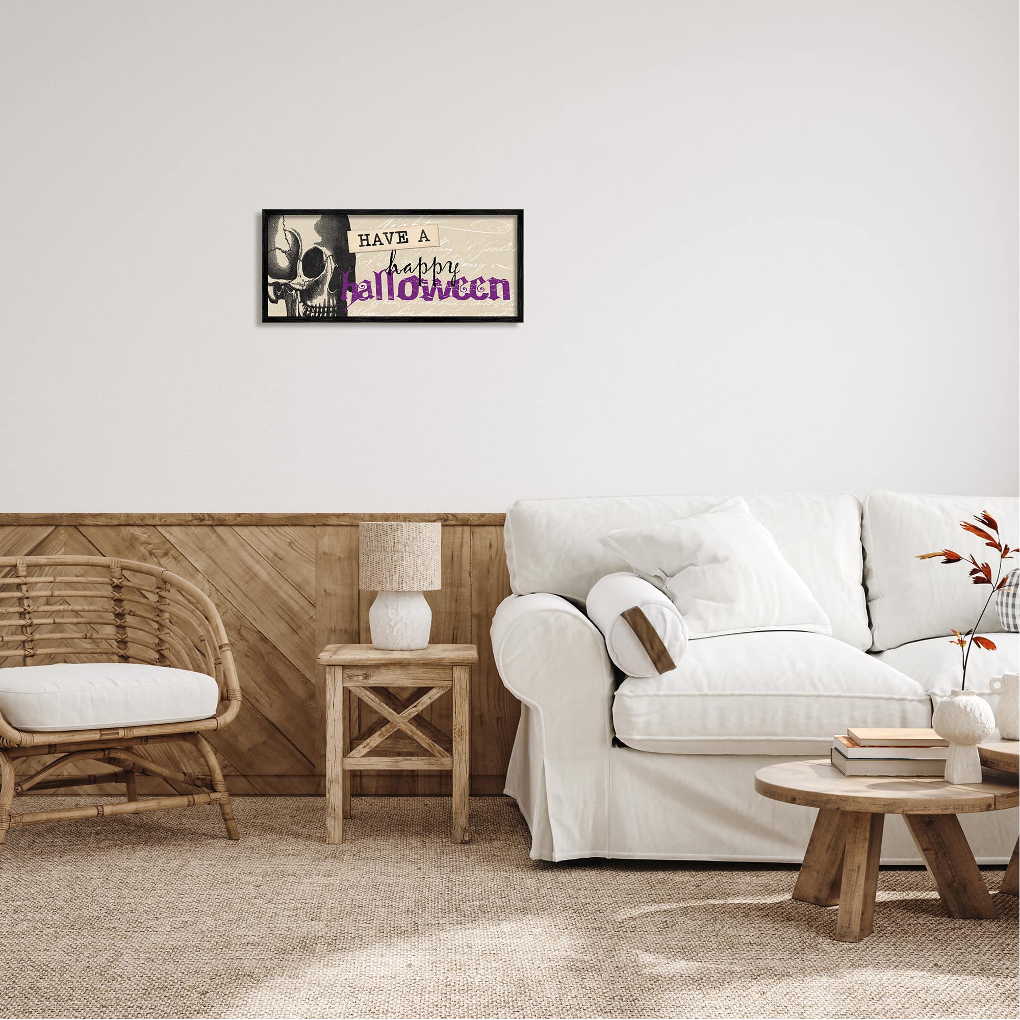 Stupell Industries Vintage Happy Halloween Skull Framed Giclée Wall Art