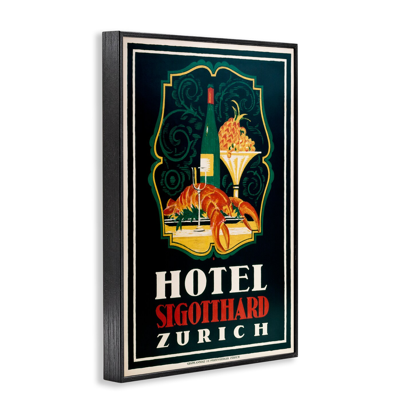 Stupell Industries Vintage Hotel Zurich with Lobster Framed Giclee Design by Marcus Jules