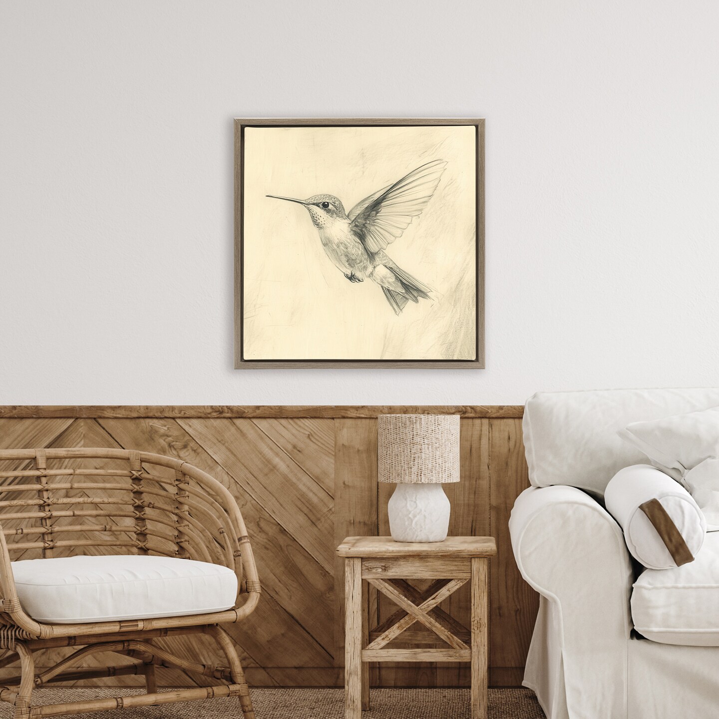 Stupell Industries Vintage Hummingbird Sketch Floating Frame, design by Petal Prints Design