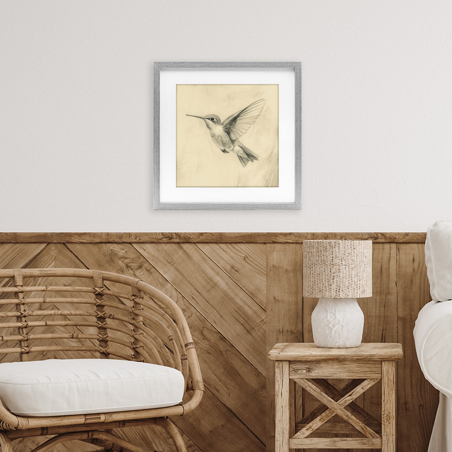Stupell Industries Vintage Hummingbird Sketch Framed Print Under Glass, design by Petal Prints Design