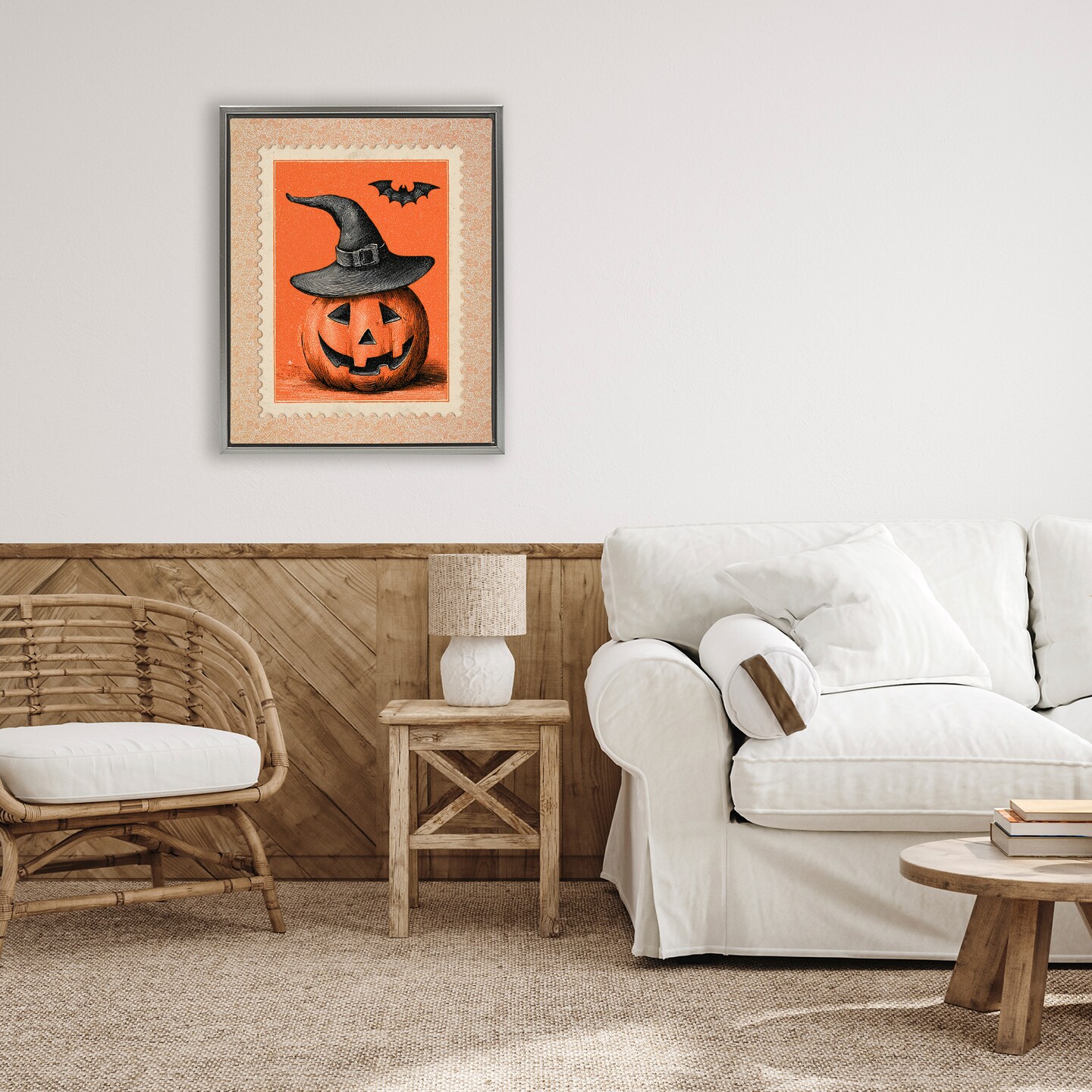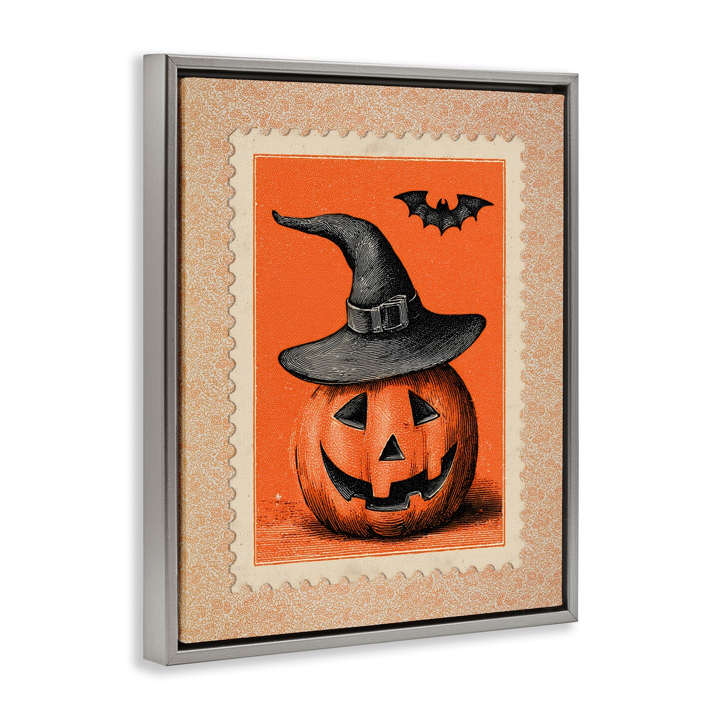 Stupell Industries Vintage Jack-o-Lantern Stamp Floating Frame, design by Arlington Prints