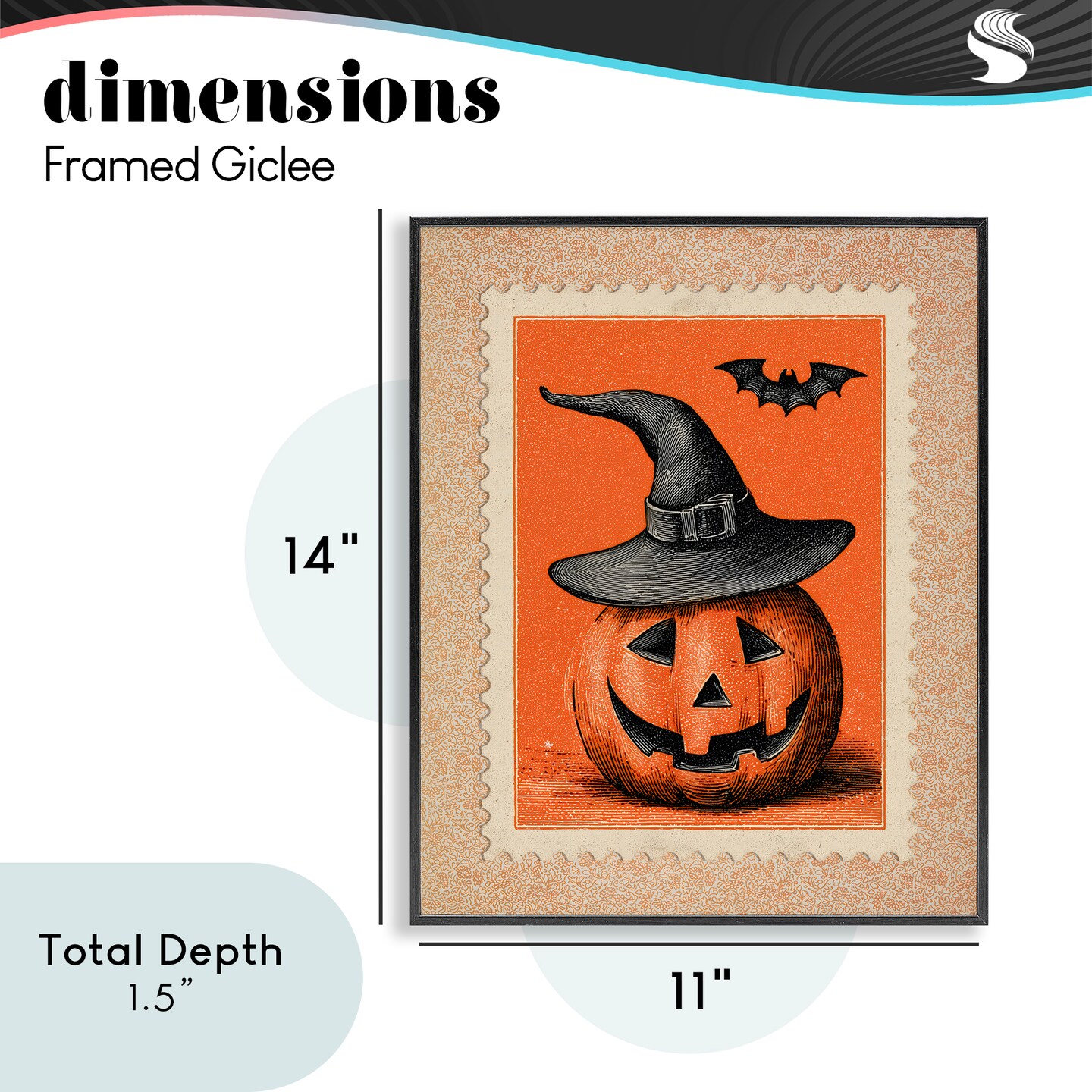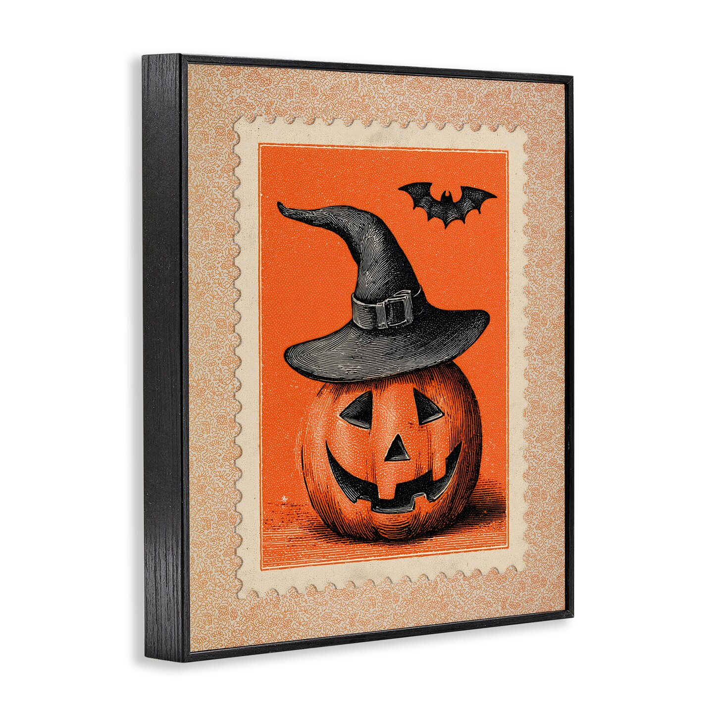 Stupell Industries Vintage Jack-o-Lantern Stamp Framed Giclee, design by Arlington Prints
