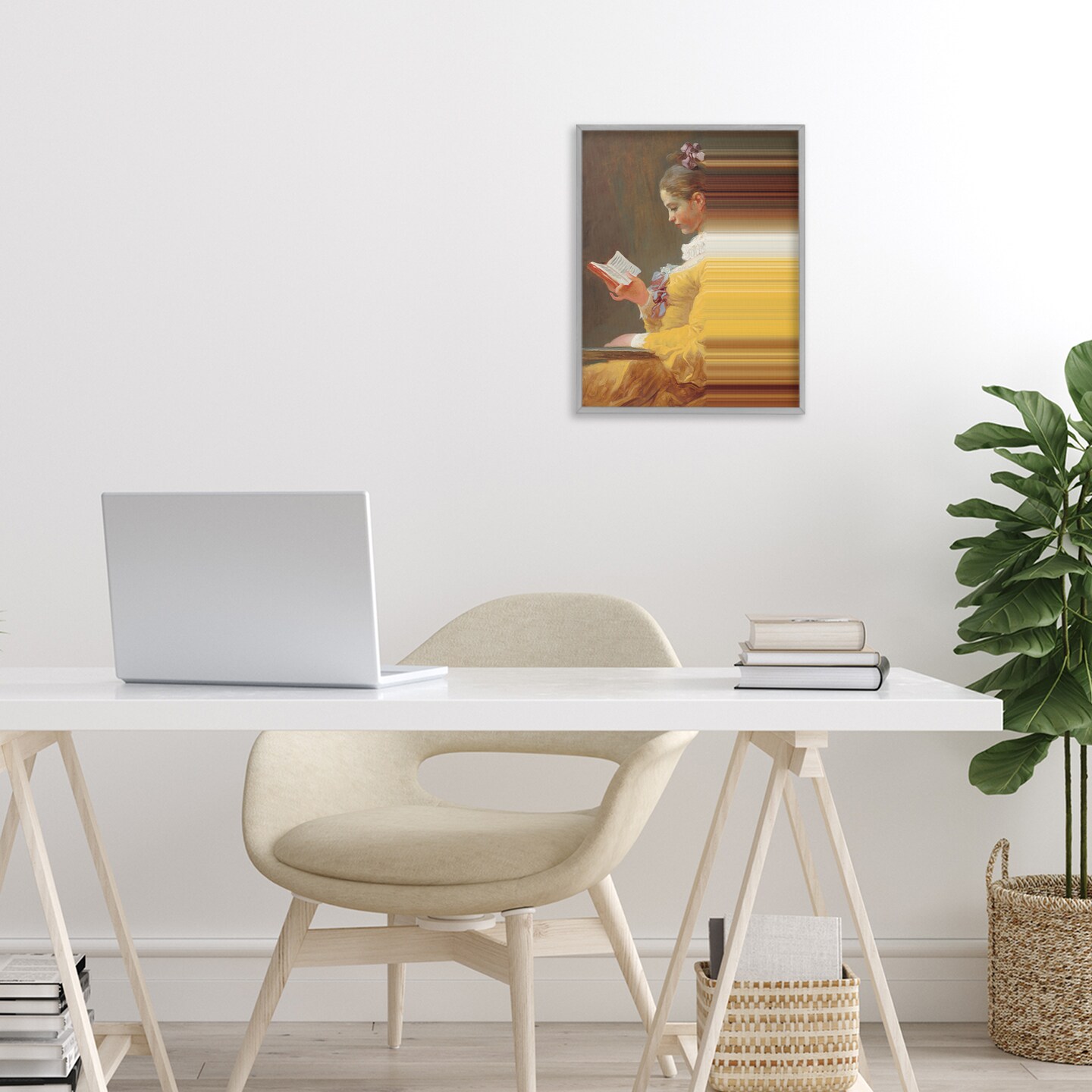 Stupell Industries Vintage Lady Reading with Gradient Streaks Framed Giclee, design by Seven Trees Design